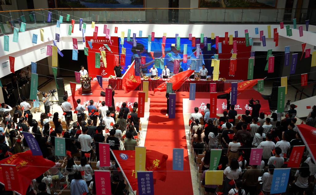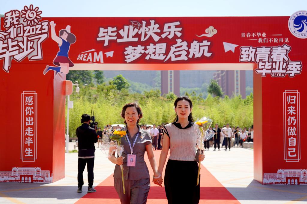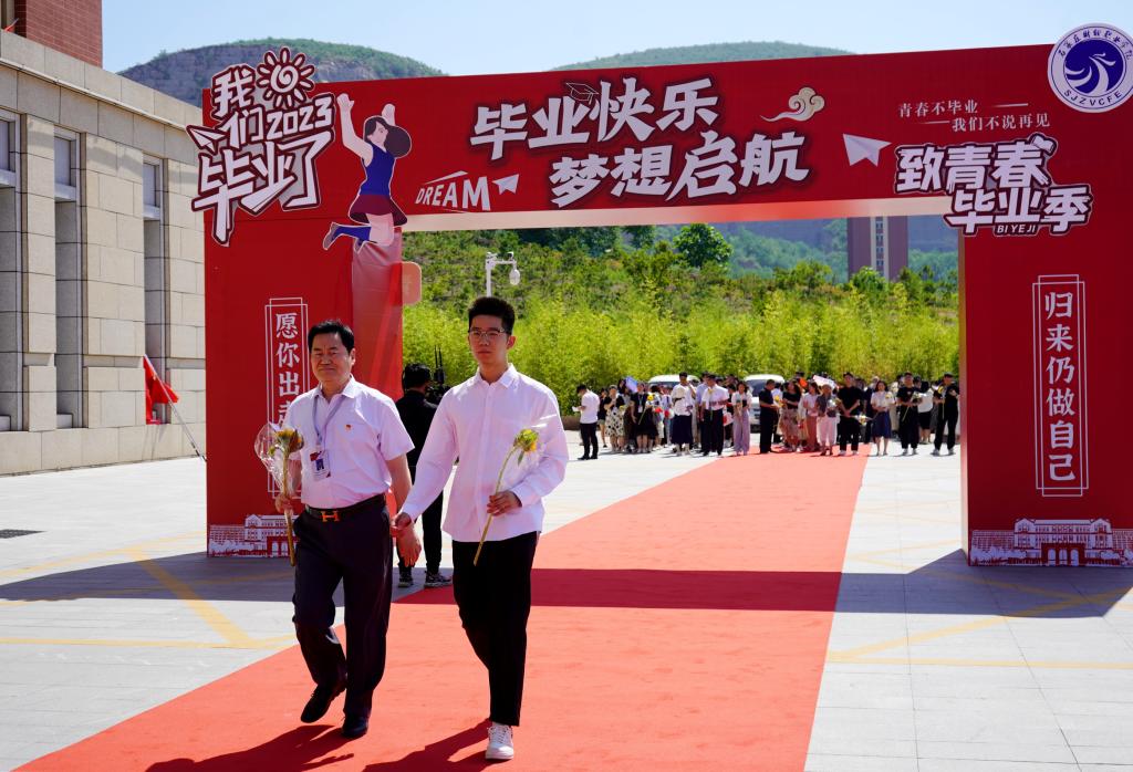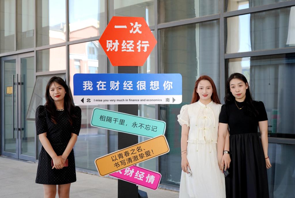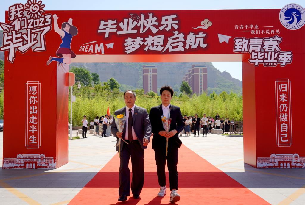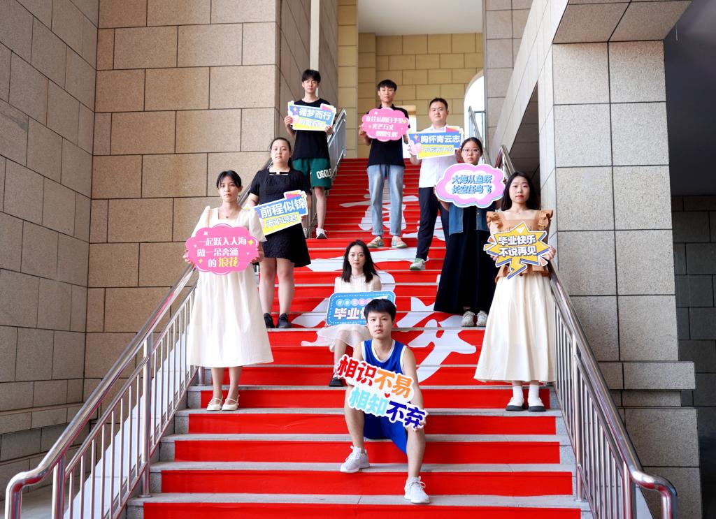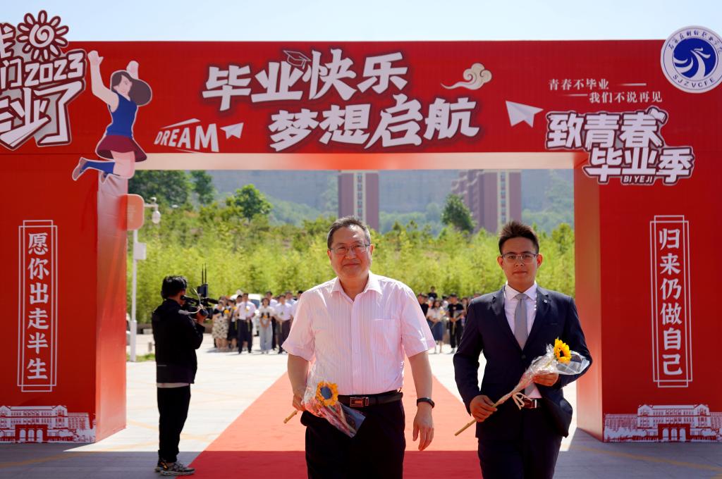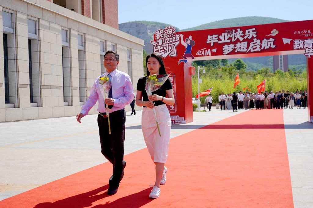 青春点亮人生路,毕业扬帆再起航!盛夏的校园处处洋溢着对毕业学子的温暖与祝福,寄托着对毕业生未来走向辉煌的美好祝愿。校领导与毕业生代表携手,穿过象征初始和未来的毕业门,踏上通往未来的红毯,手持缤纷灿烂的鲜花,红毯尽头错落有致的“不负热爱 奔赴山海”创意文字打卡墙、“青春万岁”打卡台阶、“我爱财经”专属定制可乐、有着财经生涯始终的“独家记忆”,校领导与毕业生拆“盲盒”拍照打卡区,以及青春寄语小彩旗等等,无不流露着学校的浓浓心意,讲述着财经学子的点滴成长,诠释着同学们热情洋溢的精神风貌,以极具仪式感的方式为毕业生们的学生生涯画上了圆满的句号。