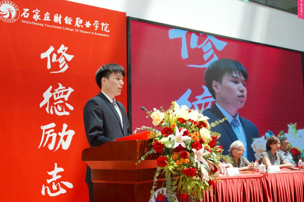 经济管理学院2023届毕业生李思远代表2023届全体毕业生发言,他回忆难忘的大学时光,畅谈求学的感悟;他感谢母校培养、感恩师长教导,表示在新的人生起点,将始终以“追求卓越、誓争一流”自勉,勇担民族复兴大任;同时表达了对母校深深的热爱、感激和不舍。