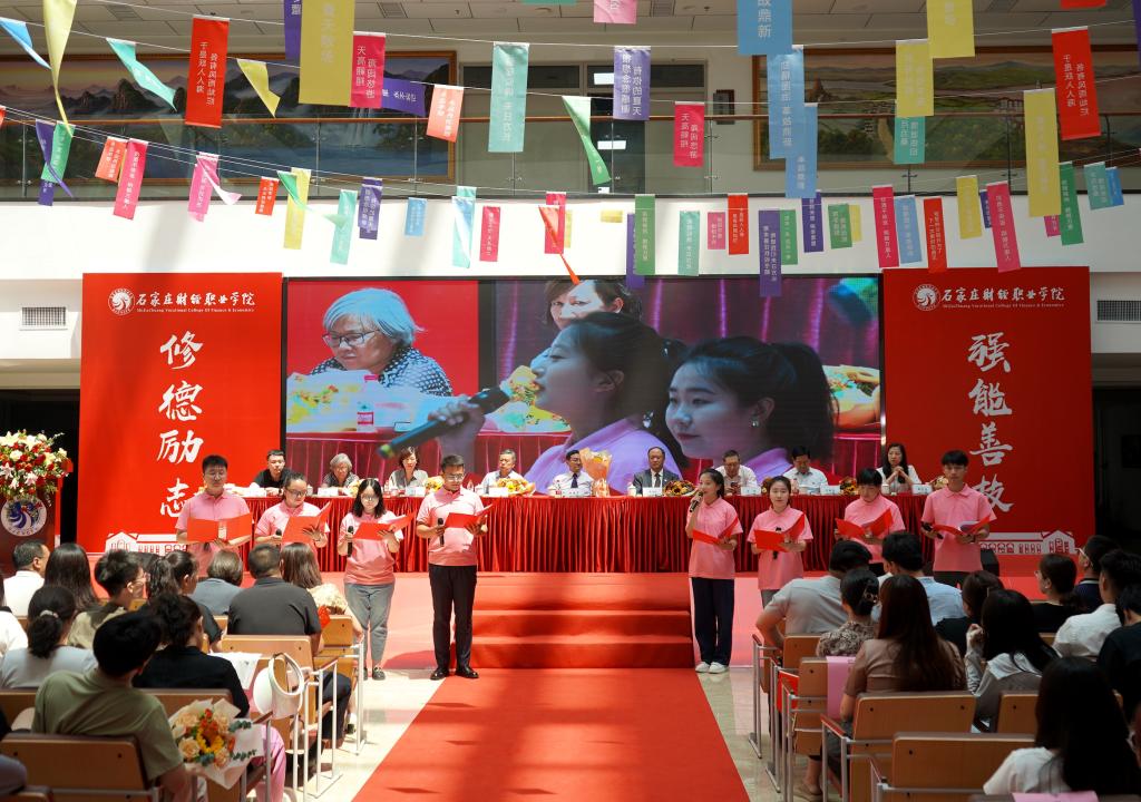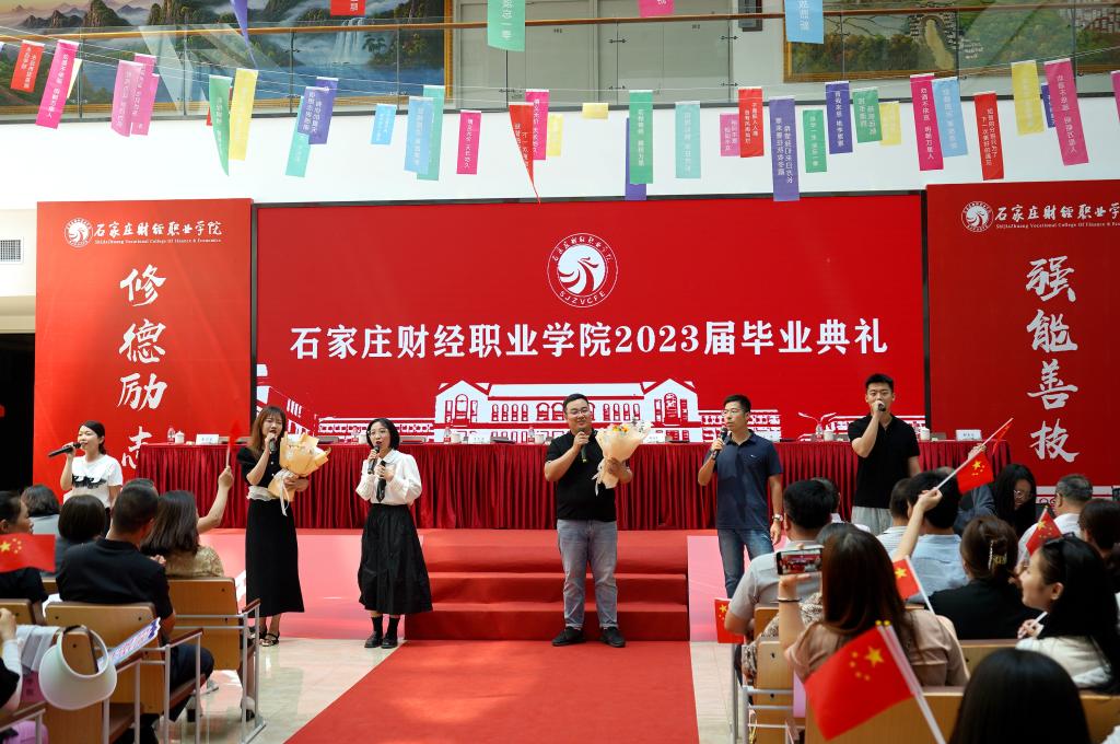 典礼上,党委书记薛向东宣读《英国beat365官方网站关于2023届毕业生毕业的决定》《英国beat365官方网站关于表彰2023届优秀毕业生的决定》,准予高振宇等1874名学生按时毕业;授予侯艺硕等38位同学“2023届河北省普通高等学校优秀毕业生”荣誉称号。