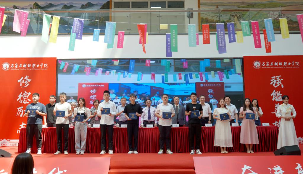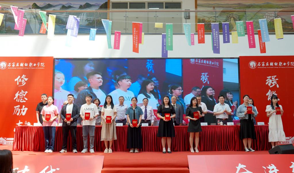 全体与会校领导为毕业生代表颁发毕业证书,为省级优秀毕业生颁发荣誉证书。