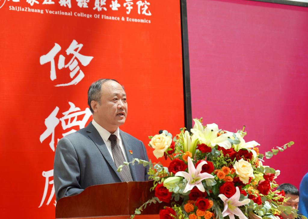 校长赵建华代表学校对全体毕业生顺利完成学业,扬帆起航、开启人生新的旅程表示热烈的祝贺。他希望同学们要坦荡真诚,心存善念;要认真生活,保持热爱;要勤于思考,努力创造。他期许同学们承载着母校的荣耀顶天立地、追求卓越、团结奋斗;带着对祖国的热爱,听党话、感党恩、跟党走,与时代同向同行,与人民同心同德;能够在时代变化中坚守初心,在国家发展中勇担使命,在奋斗磨练中增长才干,早日成长为国家建设各条战线、各个战场中可堪大用,能担重任的行业栋梁,成为实现中华民族伟大复兴的先锋力量。