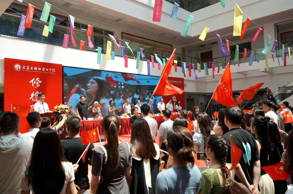 师生朗诵《不负韶华逐梦远航》,他们以朗诵的方式表达了对毕业生们的殷切期盼。将传承财经精神,发扬财经校训,不忘初心,不惧风雨,勇挑重担,以国家利益为重,让青春在党和人民需要的地方绽放,为中华民族伟大复兴和社会文明进步贡献力量。