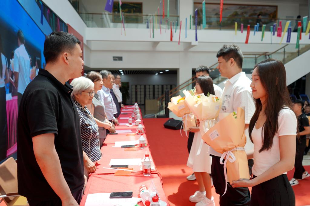 随后,毕业生代表登台,向学校领导、老师献上美丽的鲜花,表达对母校和师长的感恩留恋和真挚祝福。他们希望母校在接下来的时光中能够桃李满园,春晖四方,大展宏图,再谱华章!
