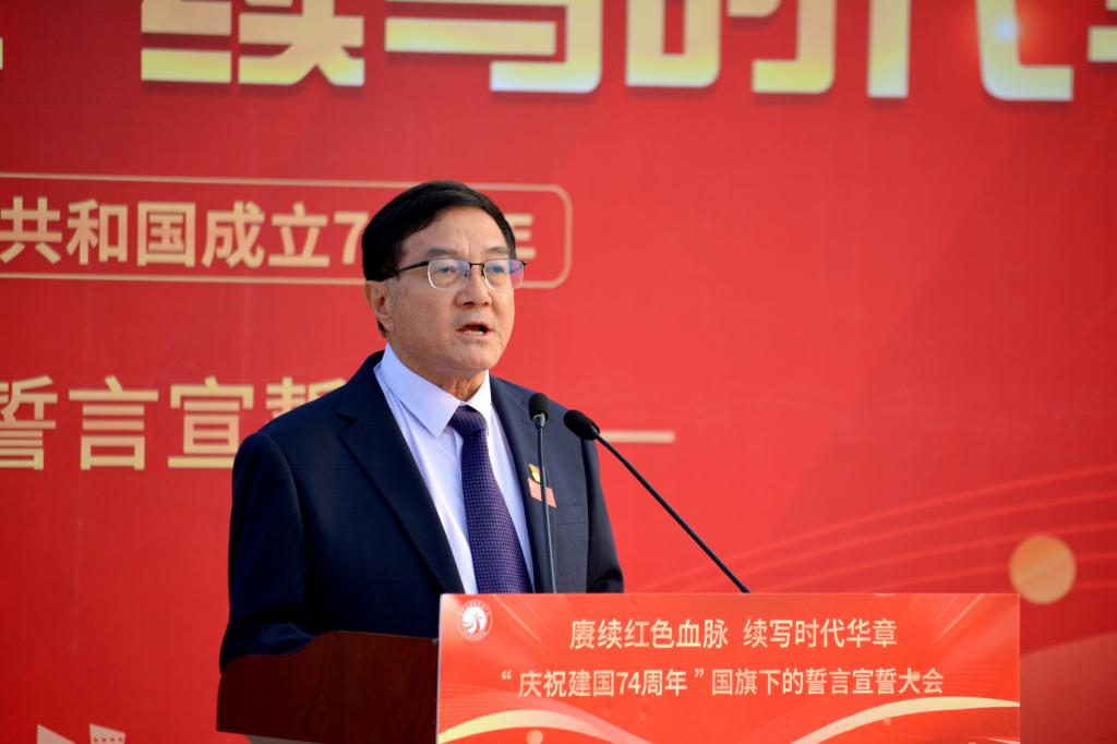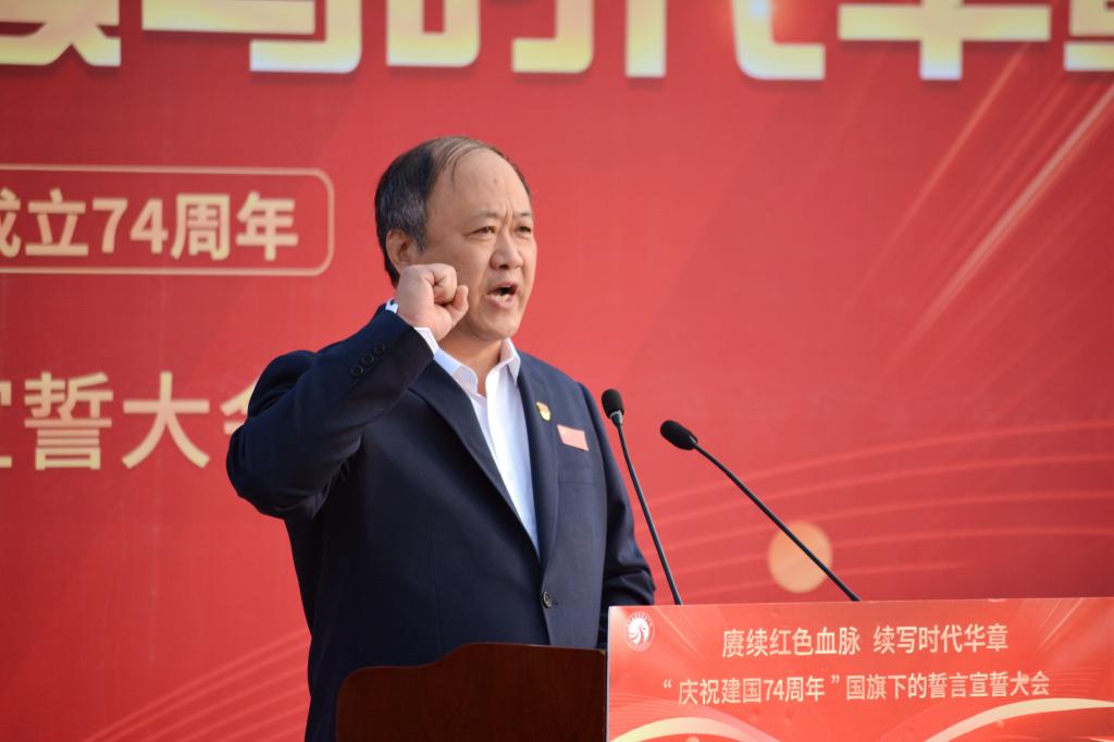 beat365深入开展学习贯彻习近平新时代中国特色社会主义思想主题教育,在新中国成立74周年到来之际,隆重举行“赓续红色血脉,续写时代华章--国旗下的誓言”宣誓大会。校长赵建华,党委书记薛向东,党委副书记肖玉辉,副校长许继海、姜波、王永利、李同鑫,校长助理赵振新出席,全体中层干部、教师代表、学生代表参加。宣誓大会由校长赵建华主持。
