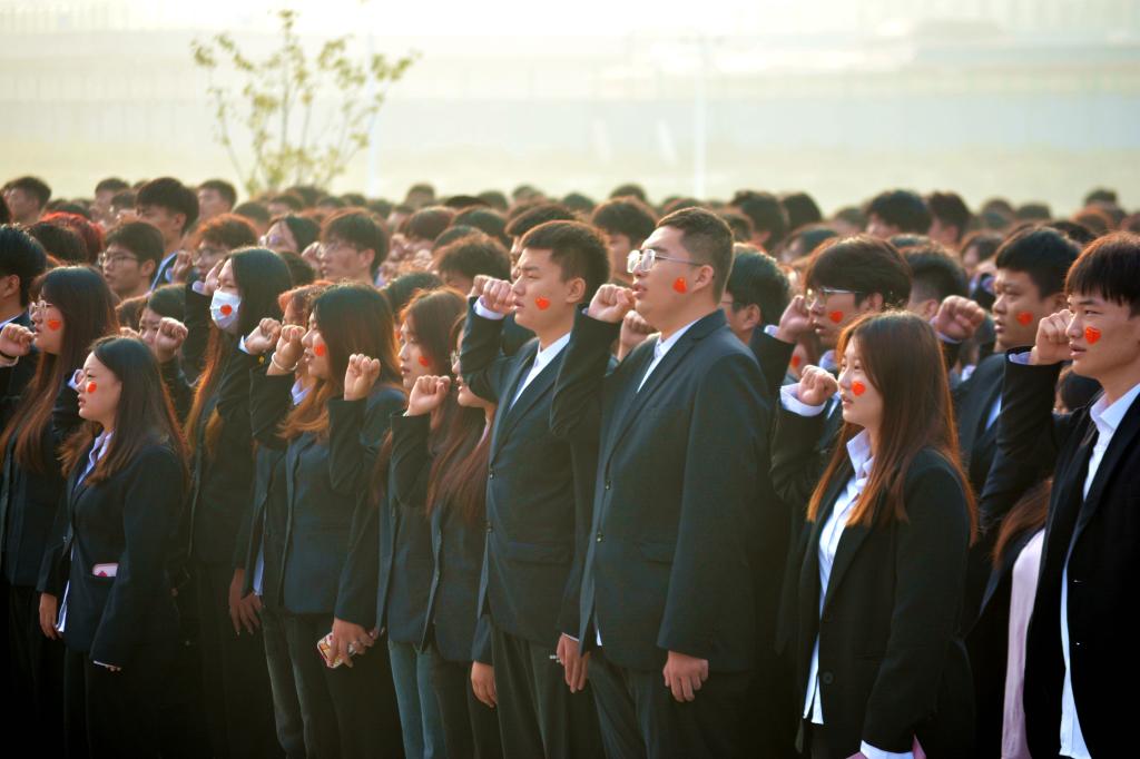 薛向东带领全体师生庄严宣誓,气势磅礴的宣誓声充分展现了广大师生浓浓的爱国之情。