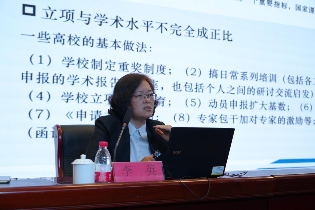 李教授以《项目申报及注意要点--以国家社科基金为例》为题,从对国家社科基金项目的“追求”、国家社科基金编制指南、国家社科基金项目函审指标设置、申报选题的确定、如何做好国家社科基金课题的研究综述和内容等方面展开,点出了项目申报书撰写时需注意的事项。同时,分享了她在课题申报、教学研究等领域的深度思考与独到见解。她的讲授既有宽阔的战略视野、又有缜密的逻辑思维;既有丰富的理论依据、也有生动的自身实践案例,为beat365课题申报提供了宝贵的启示和借鉴。