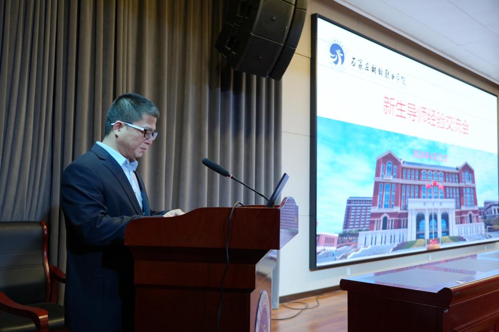 赵建华校长在会上讲话,他代表学校对2023级新生导师的辛勤工作表示感谢。新生导师制实行至今,一直是帮助新生尽快了解学校、熟悉学校环境、尽快适应大学生活的助推剂。随着教职工规模的扩大,新生的受益范围也随之增加,为学校的学风和校风建设做出了突出贡献,也为学校“双高”校建设打下良好的基石。感谢各位新生导师不辞辛苦、日复一日的辛勤指导。从去年开始,新生导师工作纳入到考 核工作中,并辅以新生导师津贴,对导师的任职资格要求也更加严格。希望通过今天的经验分享会,吸取优秀做法和管理经验,提升对2023级学生的指导成效和对2024级新生的指导启发。他希望参会教师将分享会的精神传递,使学校形成对学生关心、关注、爱护、帮助的氛围,真正践行“做对学生最好的学校”的治校理念。