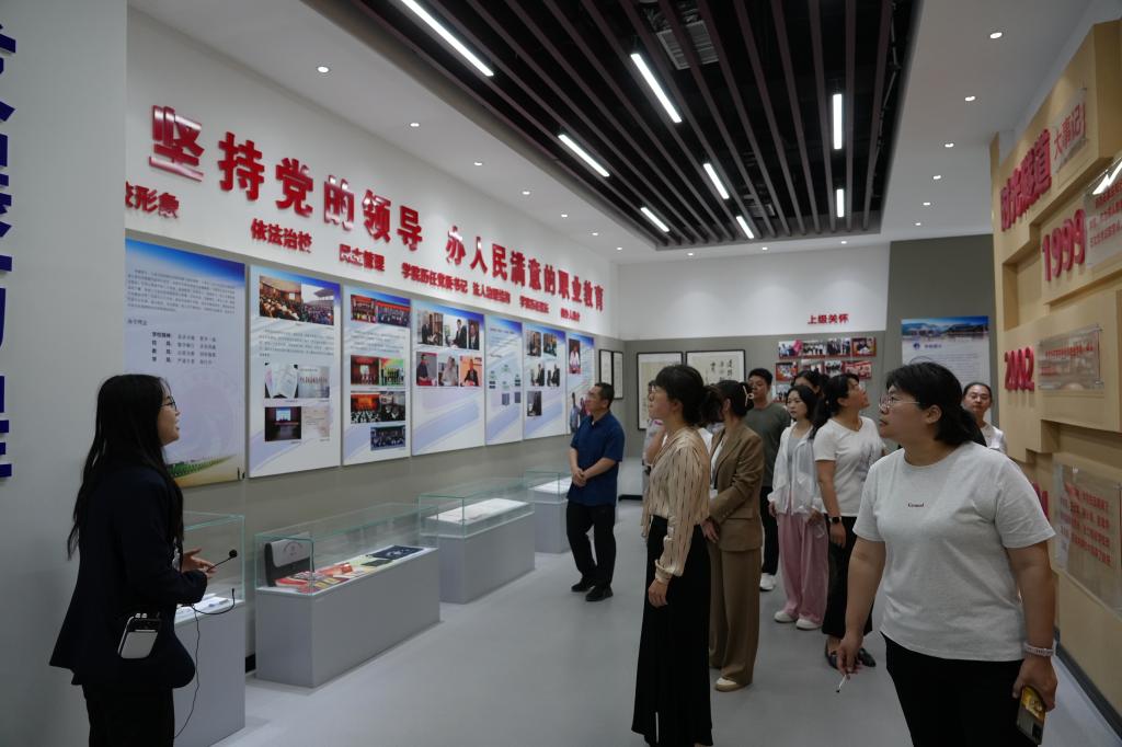 武相艳一行先后实地参观了学校校史馆、中国职业教育展室、共产主义运动展室、国防教育展室等,对beat365独具特色的“红色文化”系列展室群和丰富的教育教学资源表示高度赞赏。