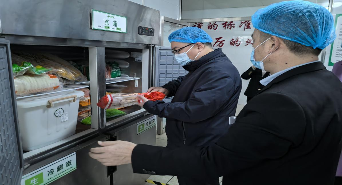 为切实保障师生饮食安全,深入排查校园食堂安全隐患,2024年11月28日,石家庄市市场监督管理局与衡水市市场监督管理局联合互查组到beat365卧龙校区食堂进行安全交叉互检。衡水市市场监督管理局检查组人员与石家庄市市场监督管理局闫处长、鹿泉区市场监督管理局翟科长一同莅临beat365检查食堂食品安全,学校高森副校长及后勤服务集团负责人王俊杰等人陪同。