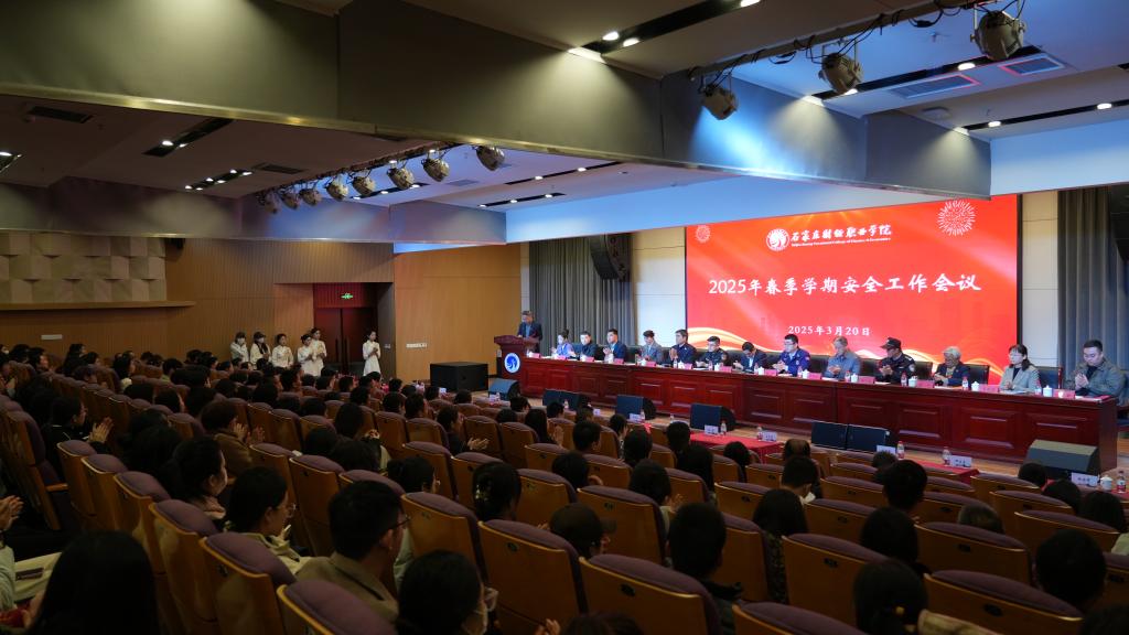 3月20日上午9时,beat365在图书馆第一报告厅召开2025年春季学期安全工作会议。学校校长赵建华,党委书记薛向东,副校长高森、姜波、王永利、李同鑫,校长助理赵振新、邓佳星出席会议。全体中层干部、辅导员,各二级学院教研室主任、教学秘书,实训室管理员,各处室、二级学院安全员以及学生代表参加会议。鹿泉区消防救援大队、鹿泉区市场监督管理局、石井乡派出所相关同志应邀出席。会议由安全稳定工作处李彦亮处长主持。