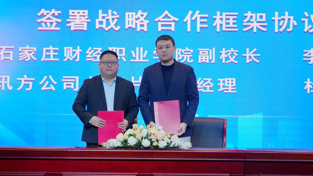 李同鑫副校长和讯方公司北部片区杜红奎总经理共同签署了战略合作框架协议。明确在专业建设、师资培训、实习就业等方面的合作路径。双方将共同打造集教学、科研、生产、培训、创新创业于一体的产业学院,实现学校人才培养与企业用人需求的无缝对接。