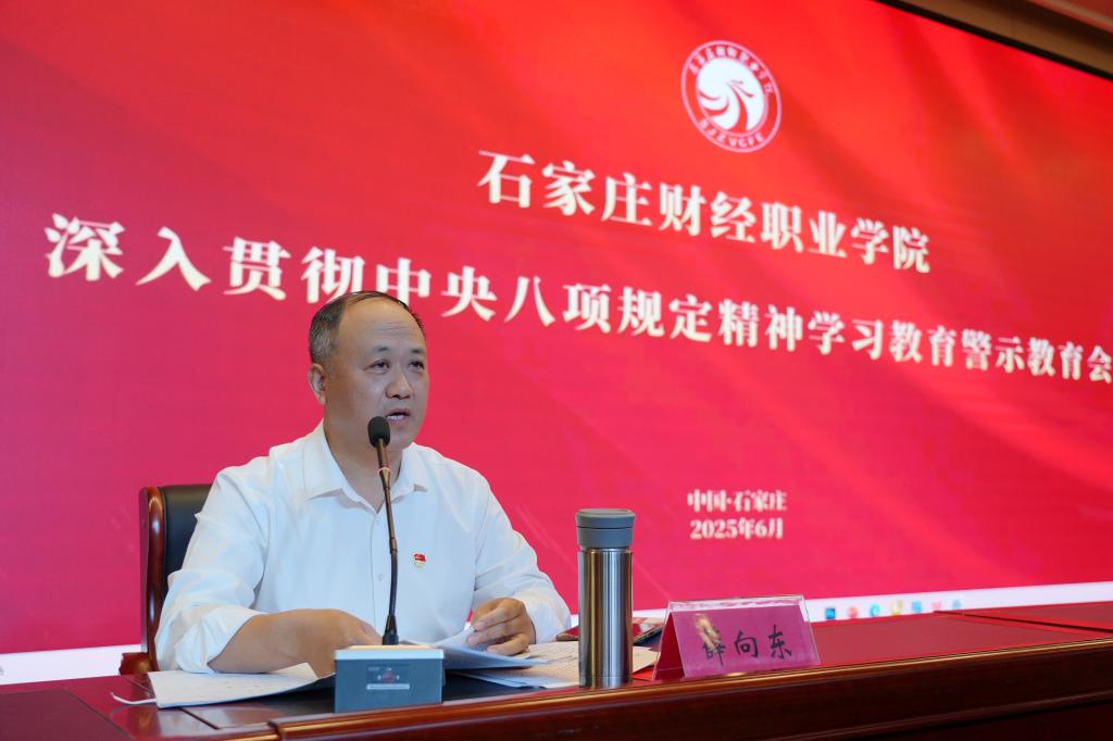 6月23日,beat365召开深入贯彻中央八项规定精神学习教育警示教育会,旨在深化全体党员干部对党的作风建设重要论述的理解,以典型案例为镜鉴,推动作风建设走深走实,为学校高质量发展筑牢纪律根基。全体校领导出席会议,全体中层干部、全体党员参会,学校党委书记薛向东主持会议。