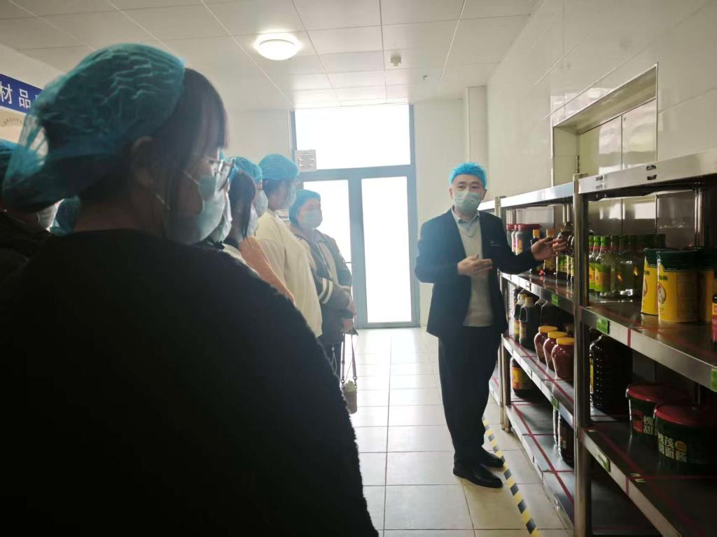 活动中,食堂负责人首先向学生代表介绍了后厨的功能分区与操作规范,随后带领大家依次参观食材存储区、切配区、烹饪区、餐具消毒区等关键区域。在食材存储区,代表们看到大米、面粉等干货整齐码放在通风货架上,标签清晰标注采购日期与保质期;冷藏柜内,生熟食材严格分区存放,绿叶蔬菜新鲜水灵,工作人员现场展示了食材溯源信息查询流程。