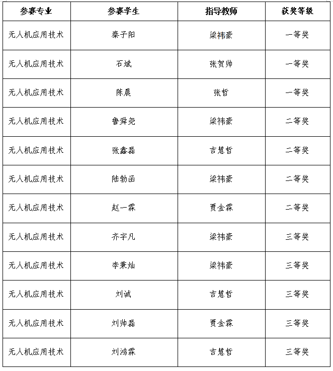 “智能飞行器应用技术赛项”一院一赛获奖名单