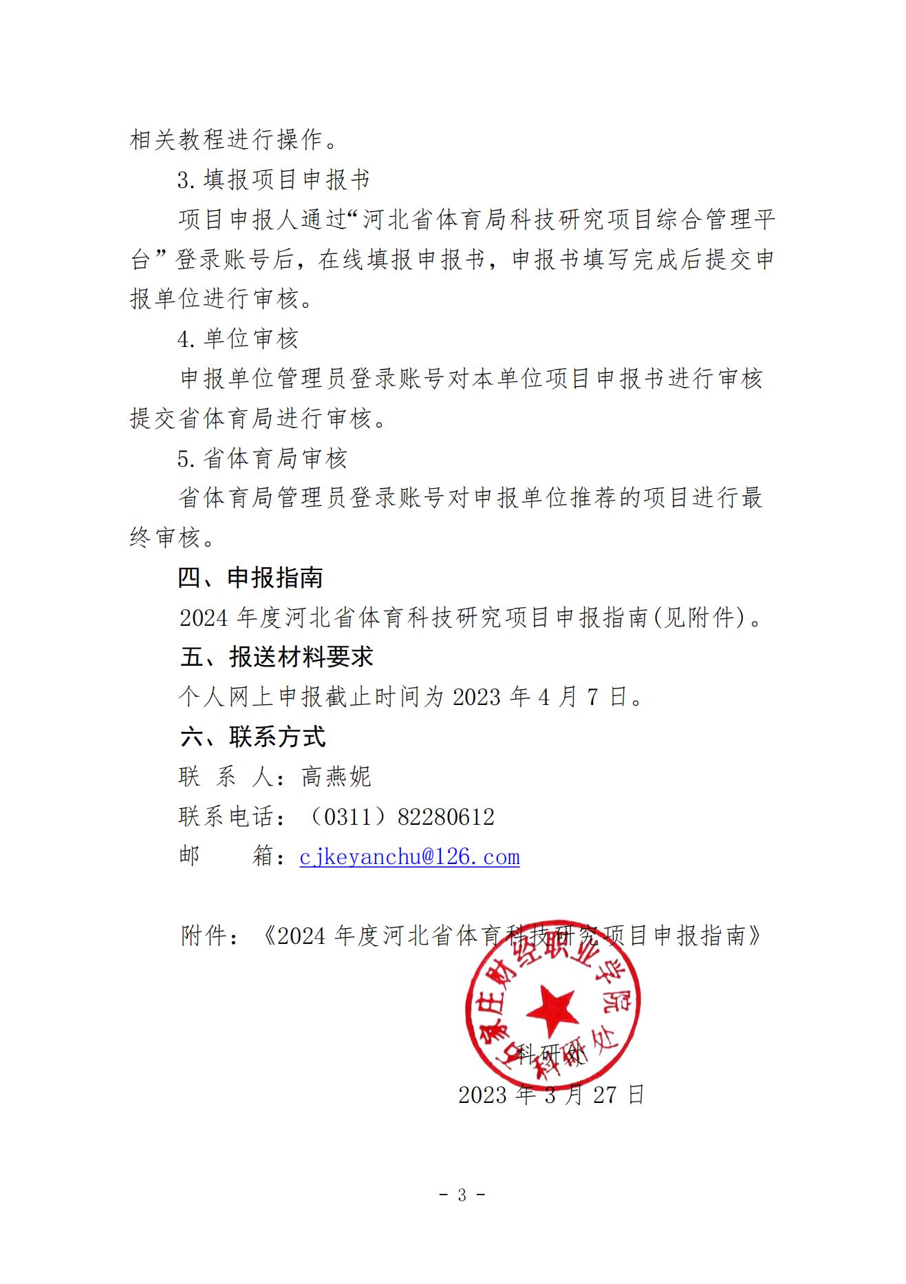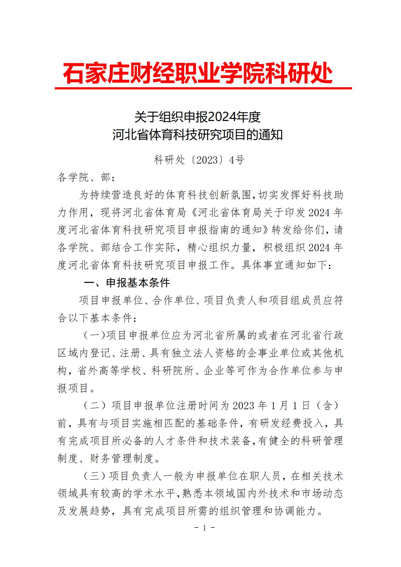 关于组织申报2024年度 河北省体育科技研究项目的通知