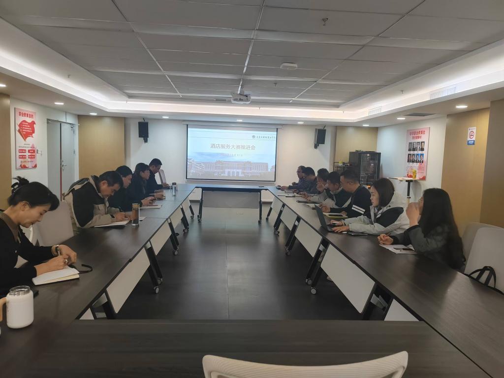 会上,经济管理学院副院长朱显英首先就2024年河北省酒店服务技能大赛的比赛时间、地点、组织机构及分工等问题做了详细阐述;随后,参与此次比赛承办工作的其他处室负责人就各自负责的相关工作进行了研讨。