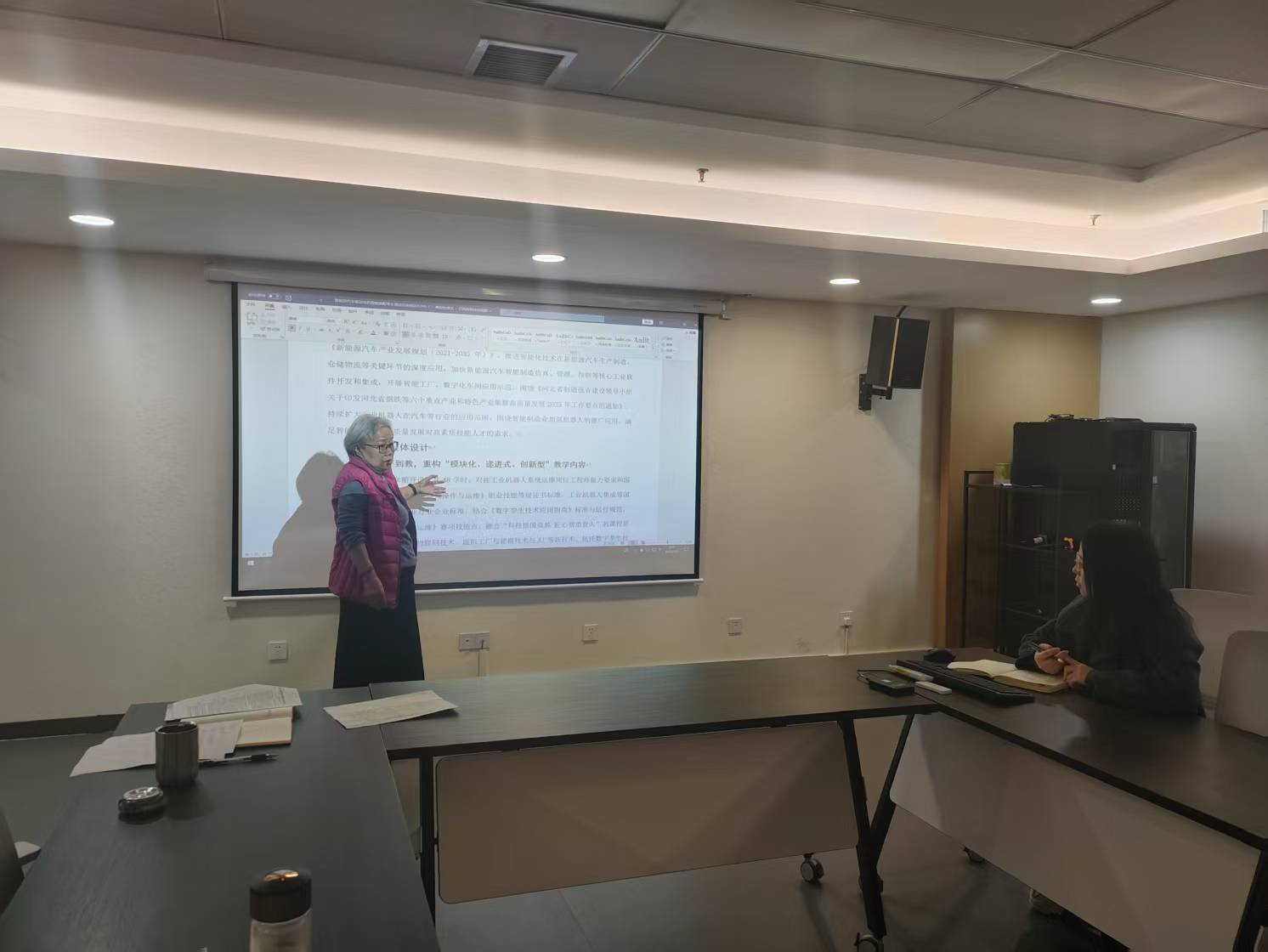 姜波副校长对汇报内容进行了点评,在肯定团队前期成果的同时,从赛事导向、创新维度、成果凝练等角度提出建设性意见。副校长姜波强调两点,一是精选参赛内容,体现课程的高阶性;二是根据课程特色,突出创新性。