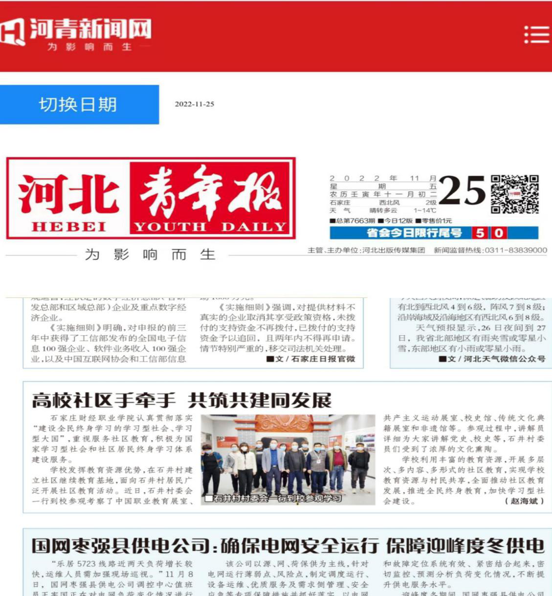 11月25日,河北青年报对此次活动进行了报道,鼓励高校利用丰富的教育资源,开展多层次、多内容、多形式的社区教育,实现学校教育资源与村民共享,全面推动社区教育发展,推进全民终身教育,加快学习型社会建设。