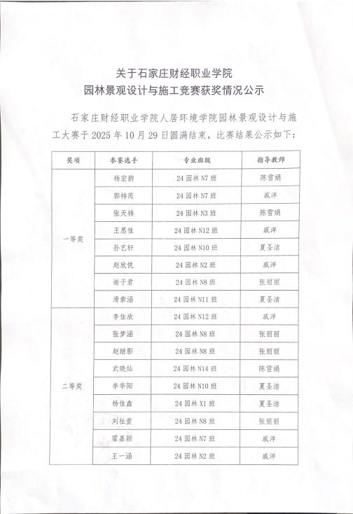 关于英国beat365官方网站园林景观设计与施工竞赛获奖情况公示