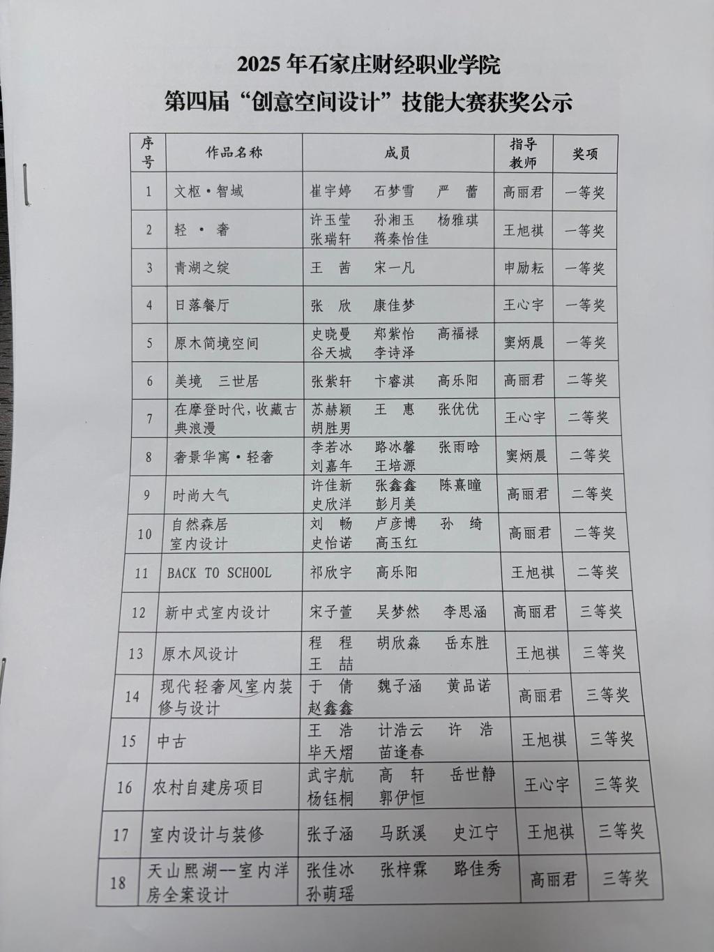 2025年英国beat365官方网站第四届“创意空间设计”技能大赛获奖公示