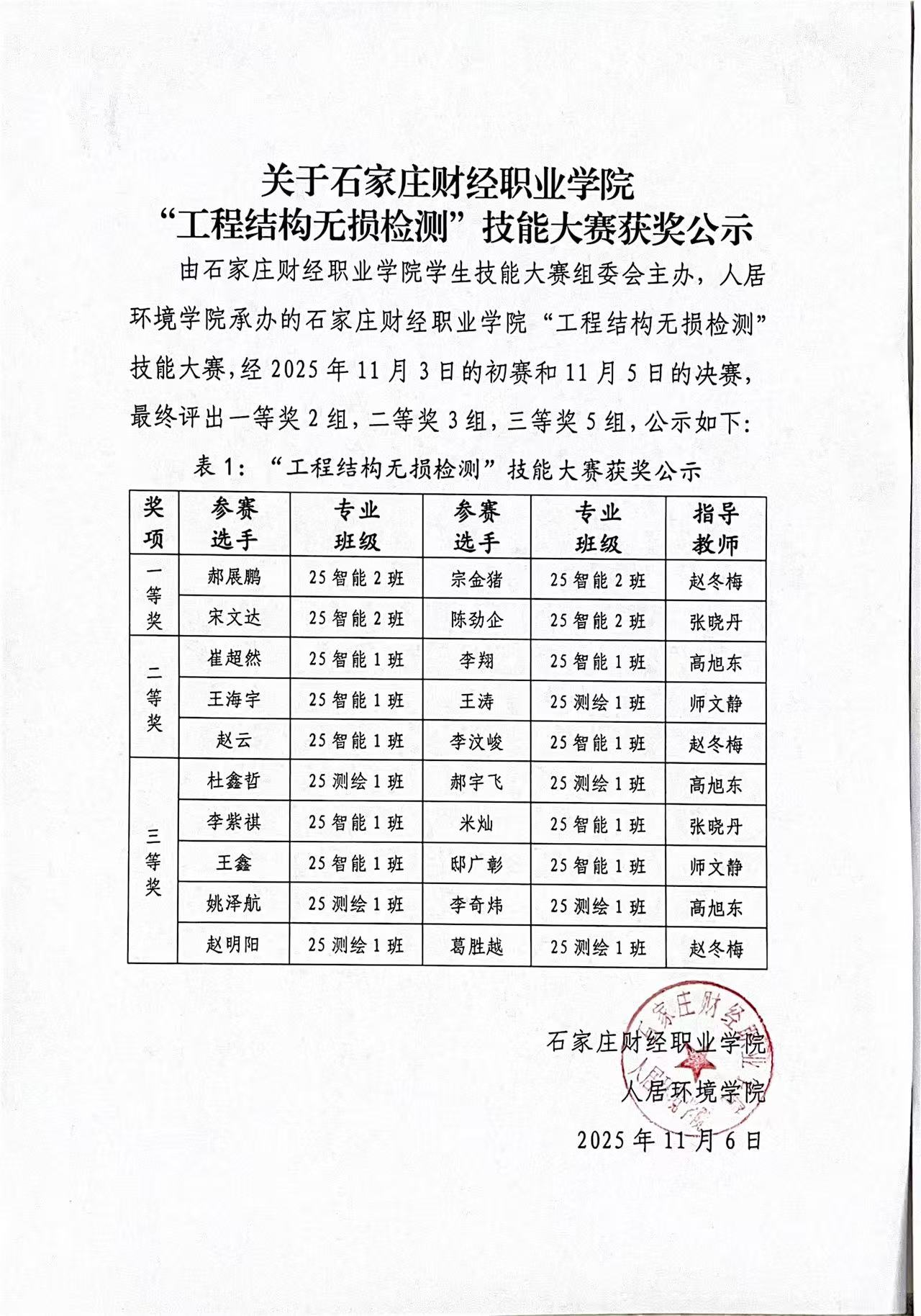 关于英国beat365官方网站“工程结构无损检测”技能大赛获奖公示