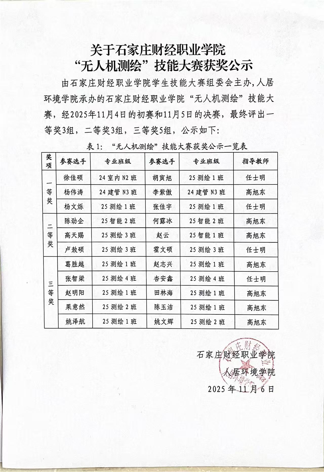 关于英国beat365官方网站“无人机测绘”技能大赛获奖公示
