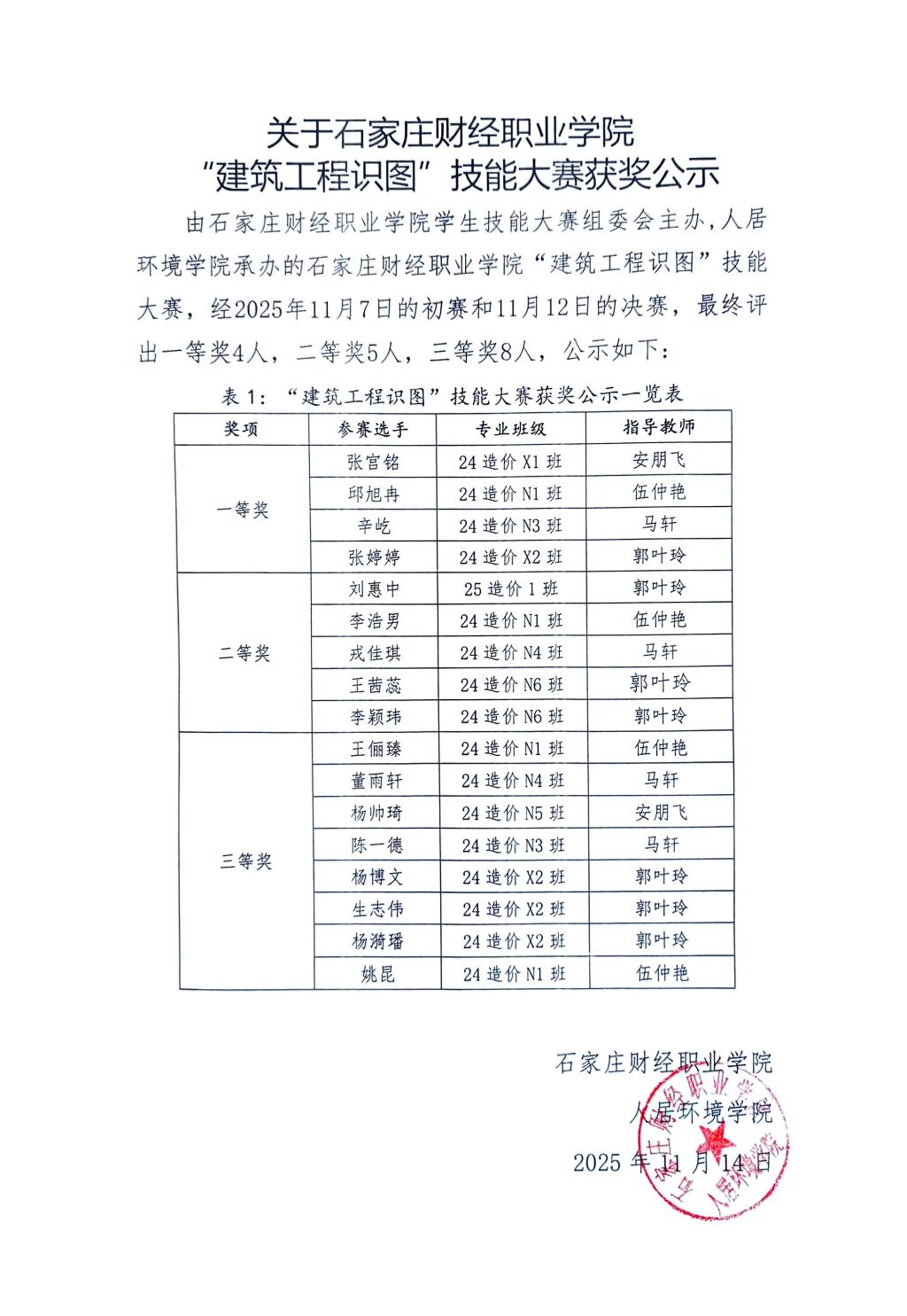 关于英国beat365官方网站“建筑工程识图”技能大赛获奖公示