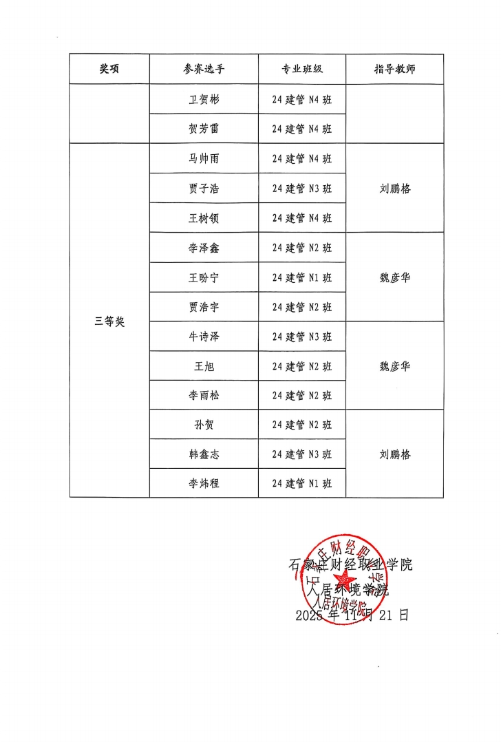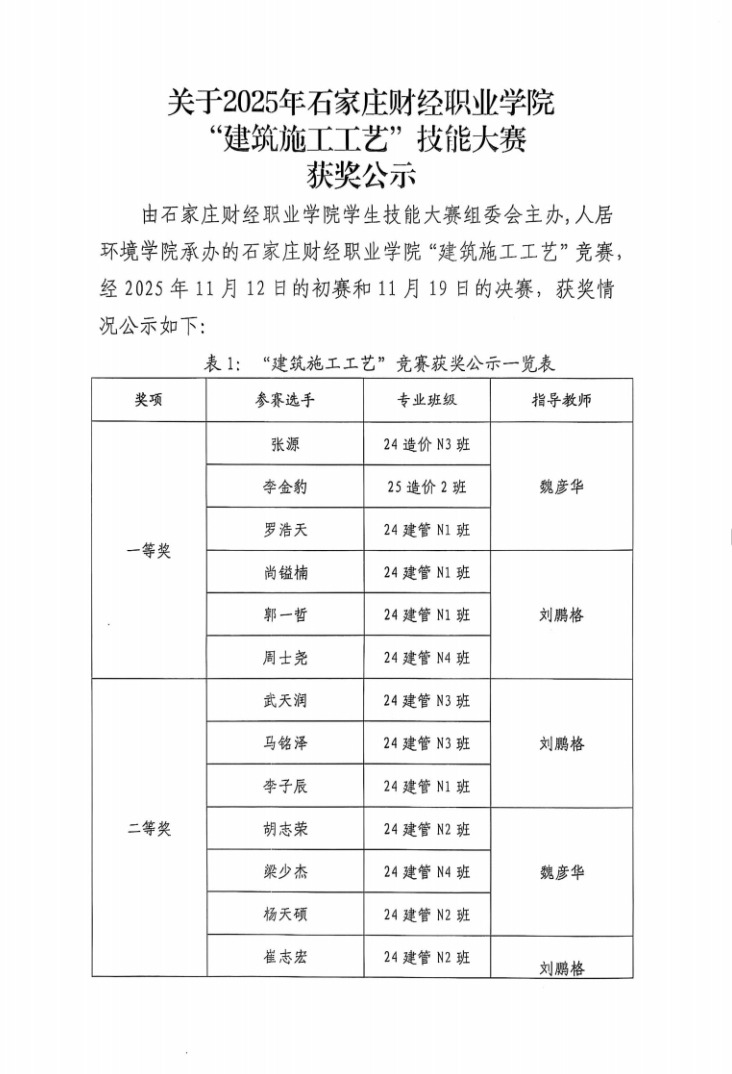 关于2025年英国beat365官方网站“建筑施工工艺”技能大赛获奖公示