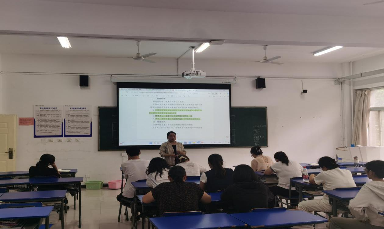 首先,范晨霞老师对基础教研室开学以来的教学资料自查情况进行了详细反馈。范老师指出,基础教研室的教学资料整体准备情况较为理想,但在某些细节上仍存在不足。例如,课堂三维目标的设定需更加合理,教案中应注重充分融入课堂思政元素。此外,课堂环节的衔接以及学生活动的设计也是教师在编写教案时需特别关注的问题。