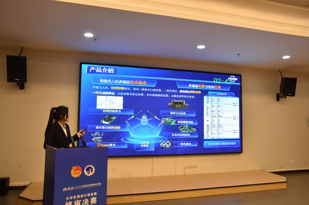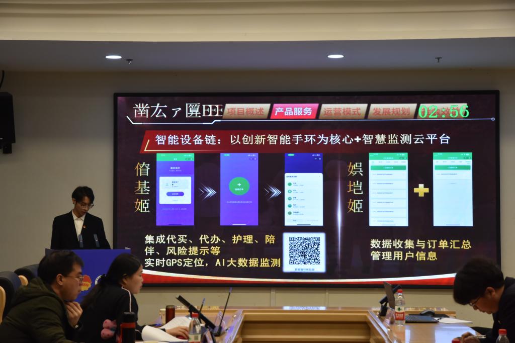 决赛现场,各参赛团队依次完成PPT路演与答辩两个核心环节。路演中,团队成员围绕项目市场前景、商业模式、核心竞争力、社会效益等关键维度,清晰呈现项目创新理念与实践价值;答辩环节,评委专家聚焦项目可行性、团队协作、风险防控等综合情况精准提问,直指项目短板并给出针对性优化建议,为项目完善提升指明方向。