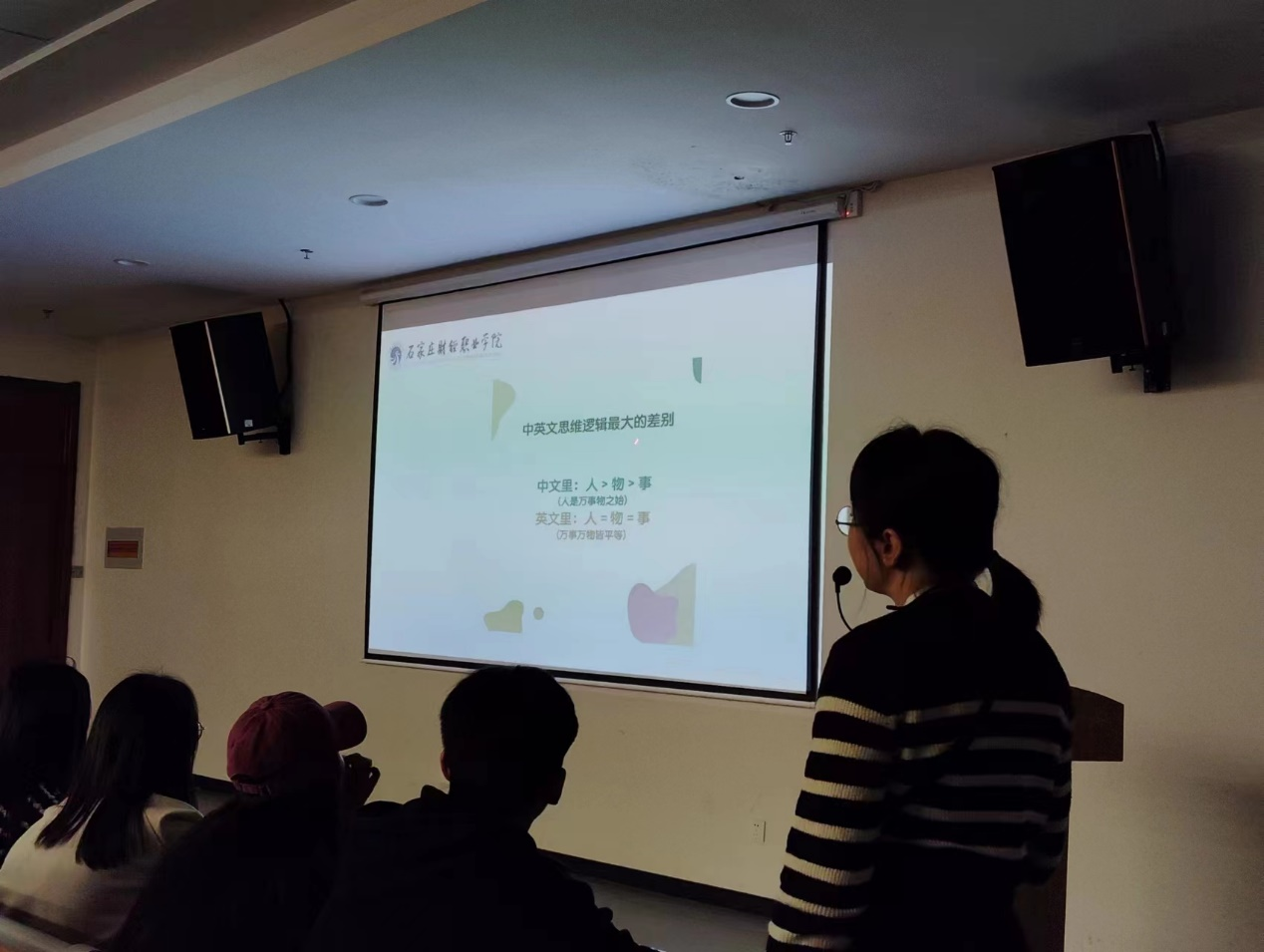 为进一步加强beat365学生对英语知识点的了解,明确学习方向。11月1日15:30由英语协会举办“座谈交流 师生共进”活动在图书馆第二报告厅顺利举行,本次活动邀请到通识与人文学院的李莎莎老师为同学们讲解英语试题中,写作、听力、阅读、翻译、作文等不同题型分别进行了介绍,并详细论述了答题技巧。