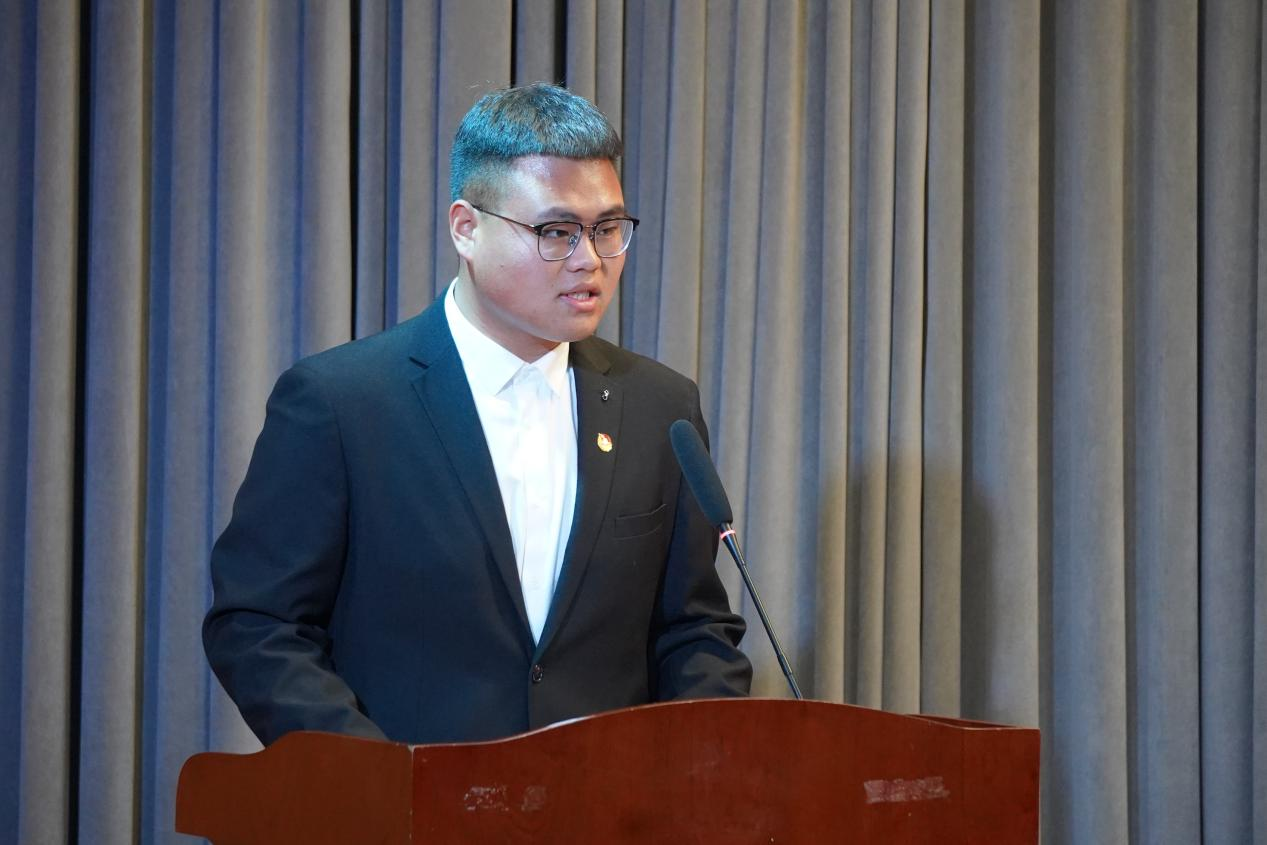 校社团管理中心主任徐嘉庆,作为社团干部代表发言,他强调到学习的重要性,作为社团干部不仅需要学习成绩优异更要工作积极,在工作中学习,以端正的工作态度对待每一项任务。在工作过程中,力求创新,包括活动形式的创新和工作方式的创新。