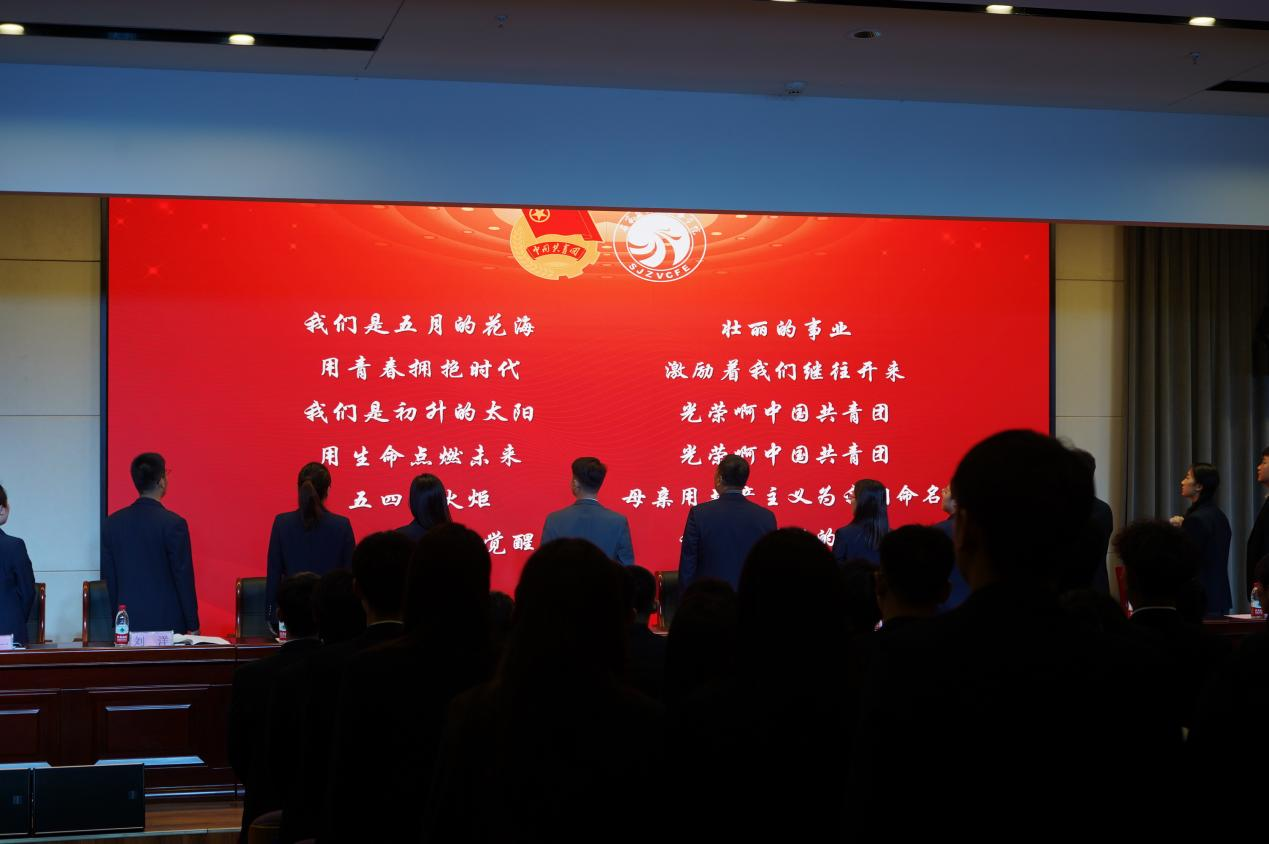 全体参会人员起立奏唱团歌《光荣啊,中国共青团》,“我们是五月的花海,用青春拥抱时代”,嘹亮的歌声诠释青年的担当,将青春与时代相碰撞出精彩的火花,社团骨干成员正值风华正茂,在音乐中发出青春奋进的决心。