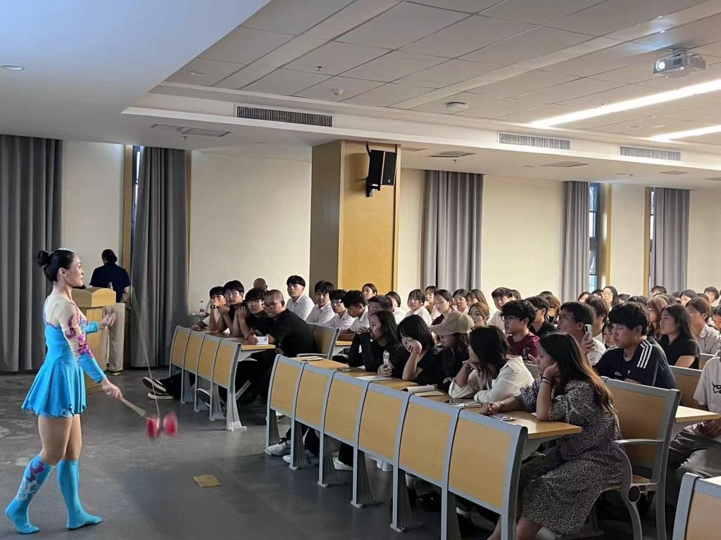 活动现场,河北省杂技团的老师对河北省杂技团及当代河北杂技发展简况、杂技的起源、杂技艺术的概念及艺术特征进行了深入且细致的讲解。