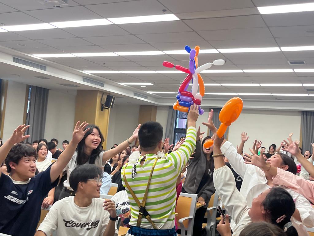 杂技表演者为在场师生带来了《空竹》《草帽》《滑稽气球》等杂技节目,让beat365师生近距离感受到了杂技的惊、险、奇、美、绝的艺术魅力。