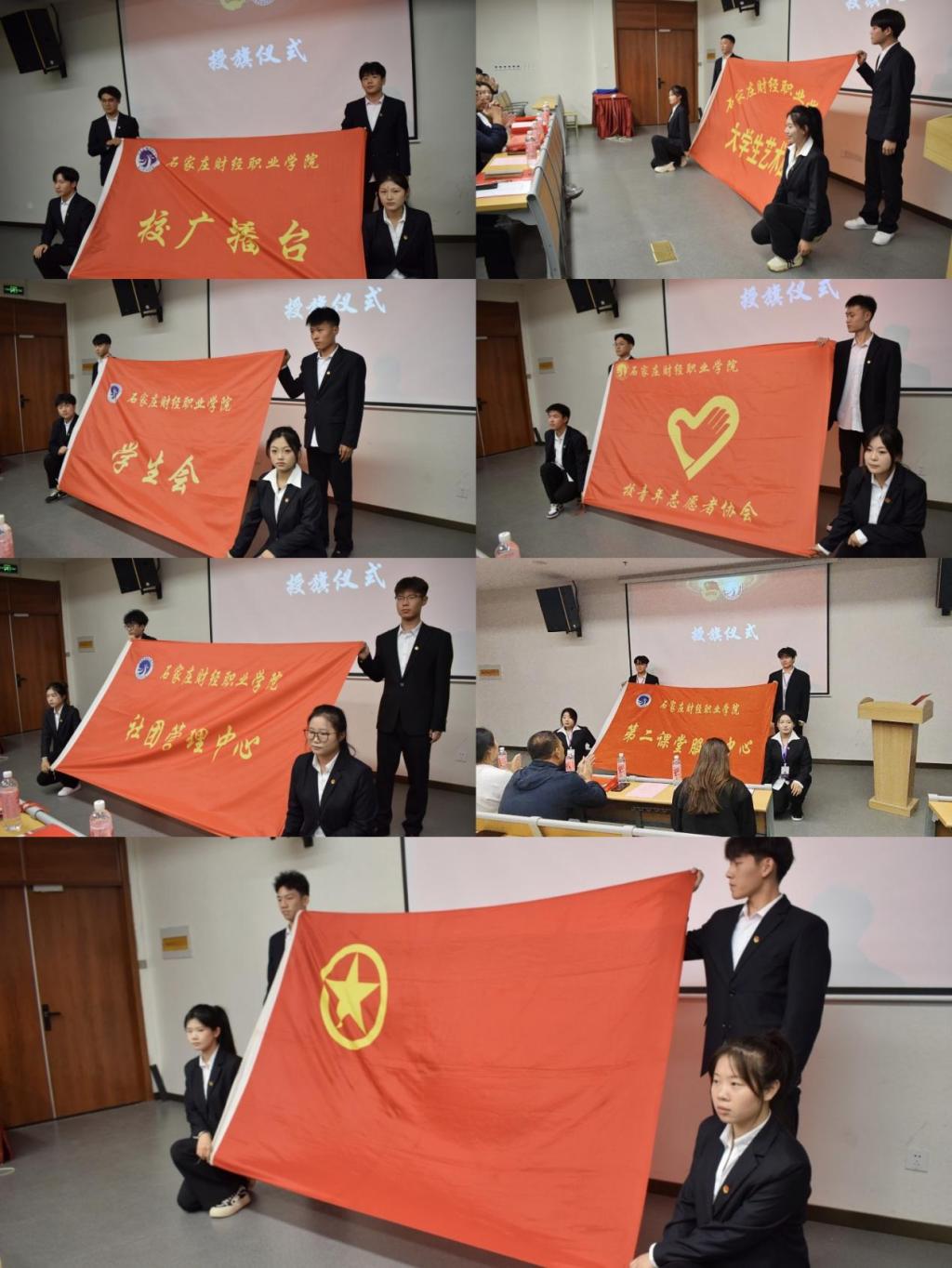大会第三项,开启授旗仪式。由学生处处长王志军将组织大旗交接给新一届干部,旗帜的交接象征着责任与使命的传承。