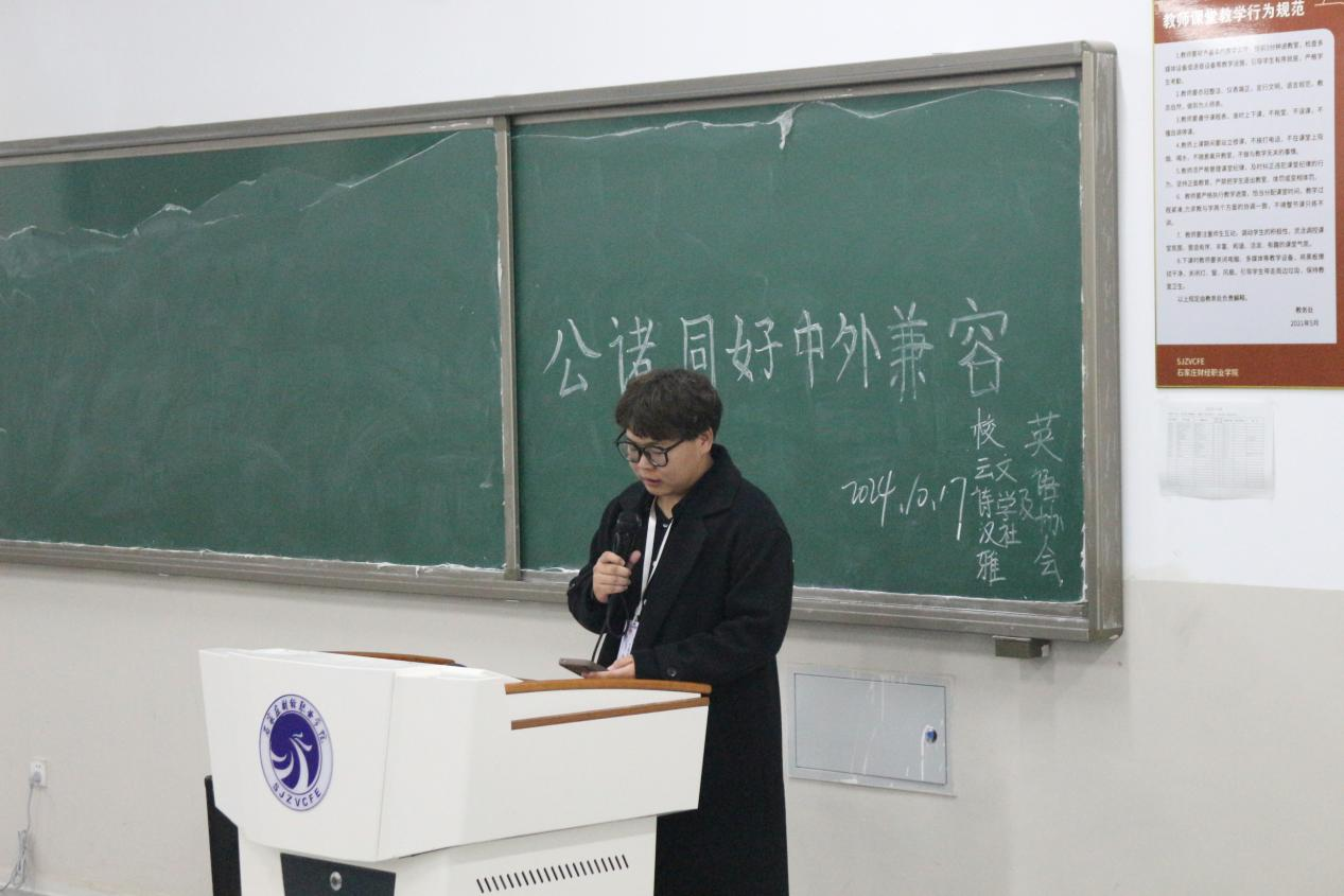 为营造校园爱读书、读好书的良好文化氛围,提高同学们理解能力,培养读书的兴趣,养成阅读习惯。英语协会与云诗汉雅文学社于10月17日20:40在A教阶梯三举办了“公诸同好 中外兼容”读书分享活动。