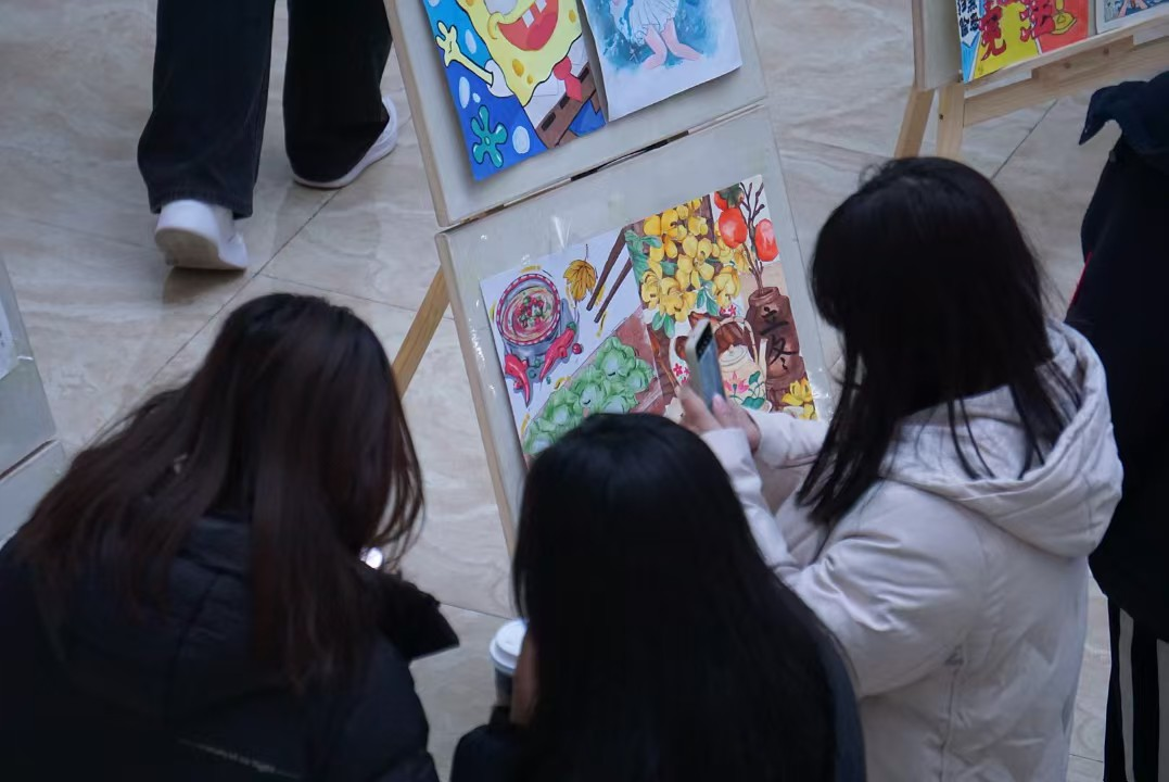 他们用笔墨抒发着对生活的热爱和对艺术的追求,让同学们感受到了书画艺术的无穷魅力。在展览区,展出了书画社成员们的近期作品。这些作品题材丰富,形式多样,涵盖了山水、花鸟、人物等多个领域。每一幅作品都凝聚着作者的心血和智慧,展现了他们高超的技艺和独特的艺术风格。同学们在欣赏作品的同时,也纷纷驻足拍照留念,对这些作品赞不绝口。