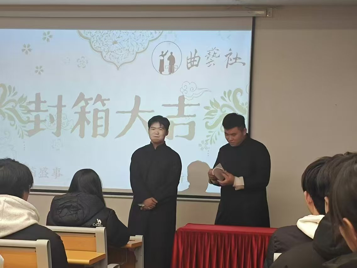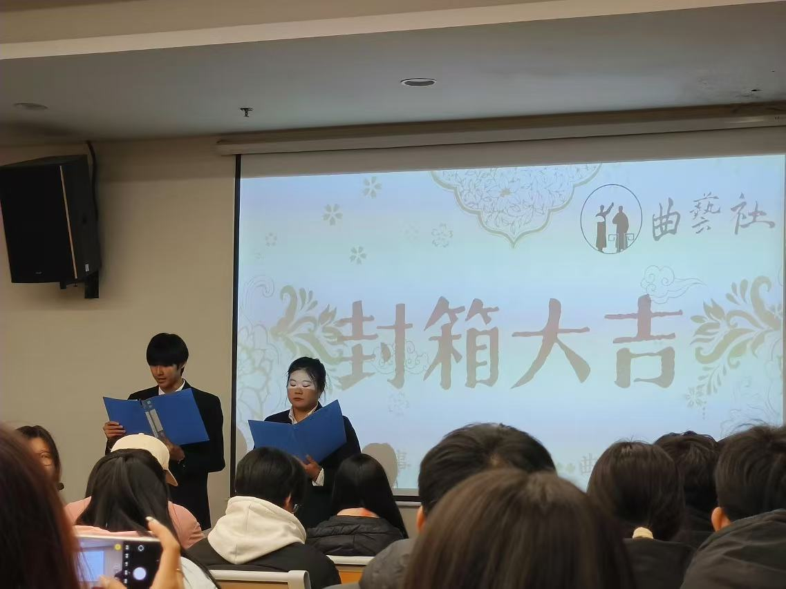 在传统曲艺的独特语境里,封箱不仅是一段演艺征程的暂歇,更象征着厚积薄发的沉淀与展望。为了给热爱曲艺的同学们一方尽情展现风采、磨砺技艺的舞台,更为了打破校园与传统文化之间的壁垒,用欢声笑语与丝竹雅韵丰富校园文化生活,曲艺社于12月13日在图书馆第二报告厅举办“承经典入封箱”的主题演出。