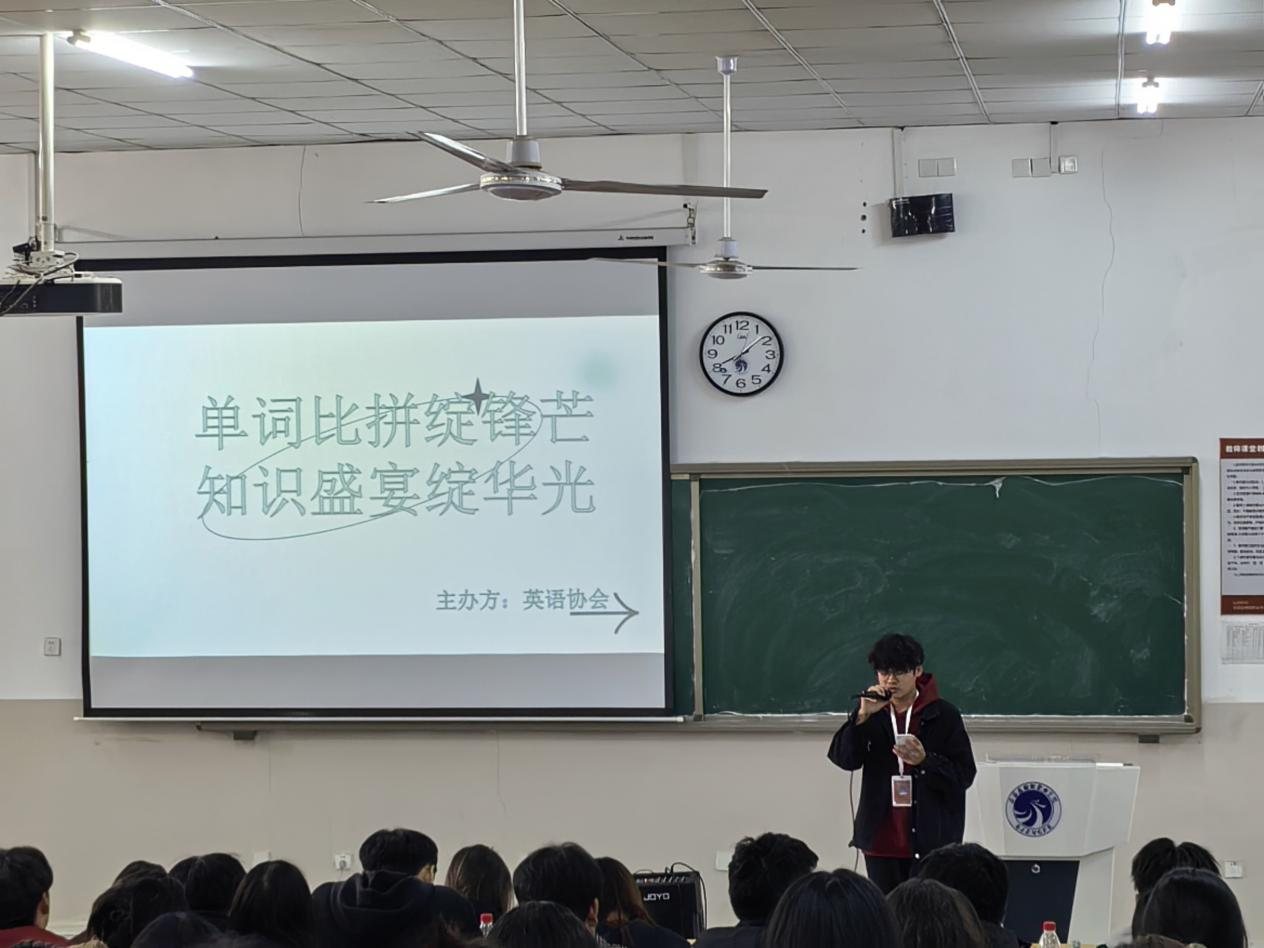 为了点燃同学们学习英语的热情,打破枯燥的传统学习模式,丰富大家的词汇量,激励大家主动探索、记忆更多的单词。英语协会于3月26日下午13:30在A座阶梯三正式举办“单词比拼展锋芒 知识盛宴绽华光”单词比赛活动。