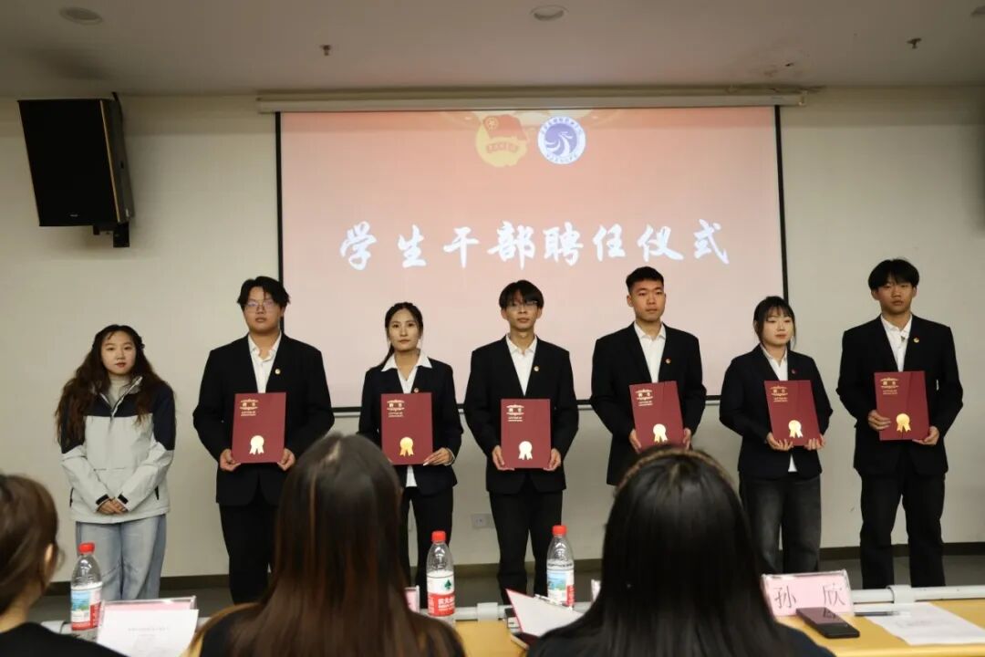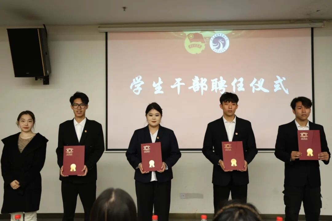 大会进入聘任证书颁发环节。校团委老师们为新一届校级组织干部颁发聘任证书,受聘干部们双手接过证书,神情庄重而坚定,这一时刻不仅是对他们过往努力的肯定,更标志着开启服务同学、建设校园的新征程。