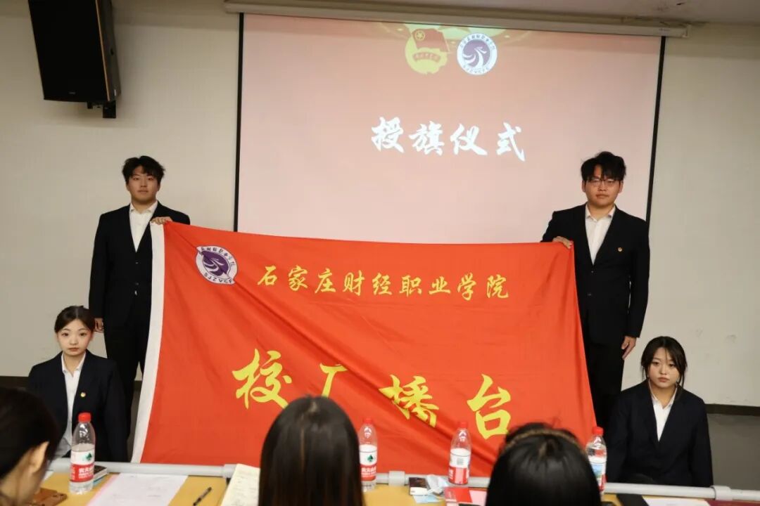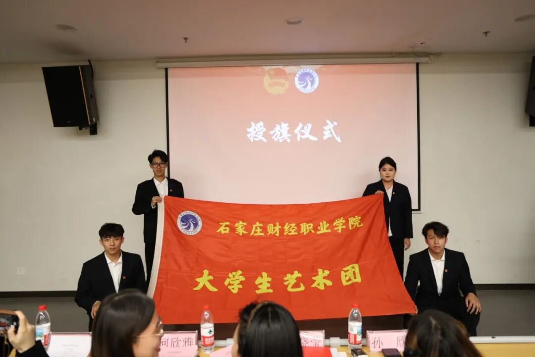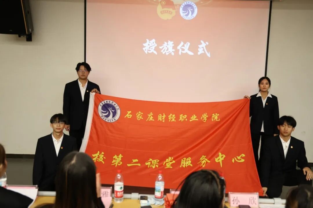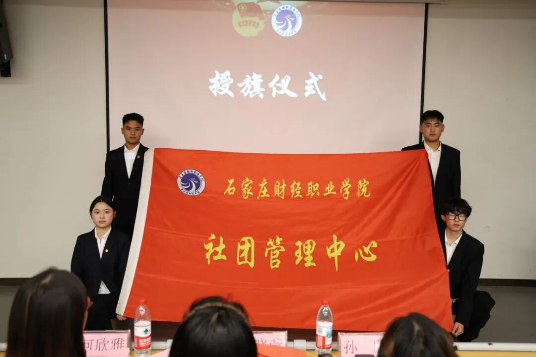 校团委副书记张晓莹老师手持象征责任与使命的组织旗帜,新一届学生干部双手接过组织旗帜。飘扬的旗帜不仅是各组织的精神象征,更凝聚着学校的期许与青年的担当。