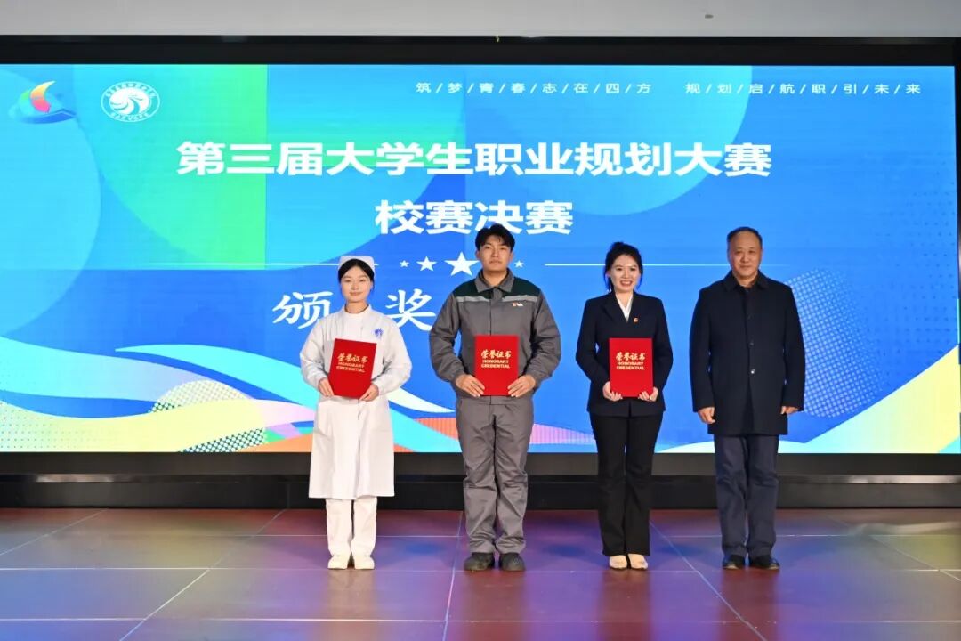 经过评委团公正严谨的评审,大赛最终评选出成长赛道金奖3名、银奖4名;就业赛道金奖3名、银奖4名。参加活动的领导为获奖选手颁发荣誉证书,鼓励他们将职业规划转化为实际行动,在追梦路上稳步前行。