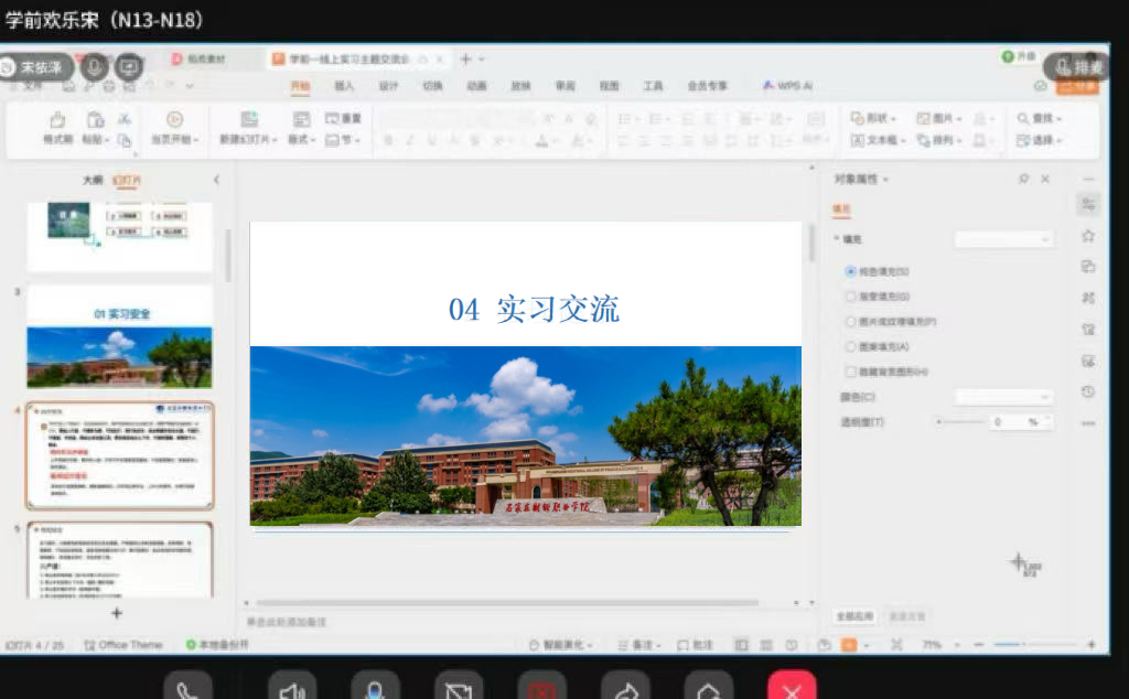 此次实习交流主题班会紧扣学生实习实际需求,通过经验分享、问题答疑、规范指引三大环节,为实习学生提供了全方位的支持与指导。学生们纷纷表示,班会内容实用、针对性强,不仅学到了宝贵的实习经验,也进一步明确了实习重点与方向。下一步,学院将持续关注实习学生动态,为学生顺利完成实习、实现职业成长提供有力保障。