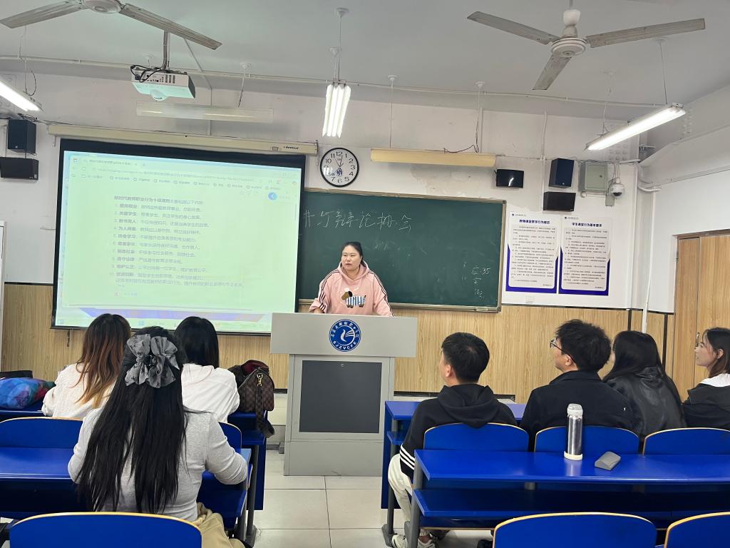 10月15日在致远楼103教室,beat365副院长张迎,对beat365全体教职工进行了师德、师风专题培训活动。