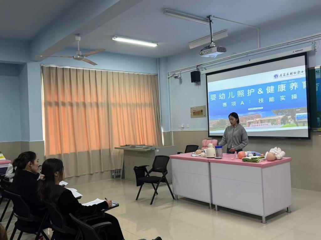 赛场之上,选手们以饱满的热情投入比拼。在仿真婴幼儿模型实操环节,他们眼神专注、动作轻柔,一边操作一边轻声安抚,将“回应性照护” 理念融入每一个细节;理论知识测评与发展分析环节,选手们沉着应答,精准解读婴幼儿身心发展特点,展现了扎实的专业知识储备。