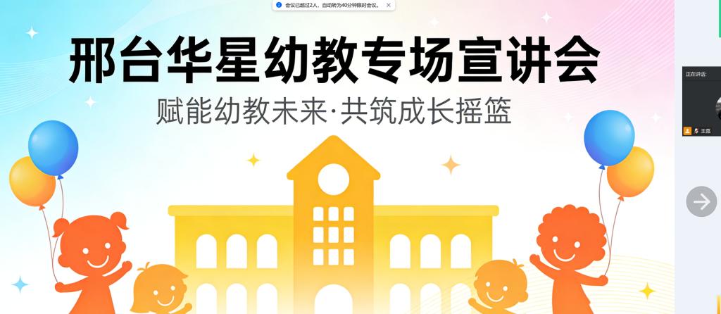 为搭建校企实习合作桥梁,助力学前教育专业学子积累实践经验,2025 年 7 月 9 日 13:30 至 15:30,邢台华星幼教专场实习招聘会在beat365学前教育与艺术教育学院线上招聘会成功举办。本次招聘会聚焦保育员实习岗位招聘,吸引 100 名学前教育相关专业学子踊跃参与,求职氛围热烈,校企实习对接高效顺畅。