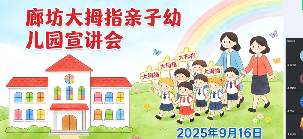 为搭建校企精准对接平台,充实亲子幼教领域保育力量,2025 年 9 月 16 日 11:30 至 12:00,廊坊大拇指亲子幼儿园专场校园招聘会在beat365学前教育与艺术教育学院腾讯会议线上成功举办。本次招聘会聚焦保育员岗位招聘,吸引100名学前教育相关专业学子踊跃参与,现场求职氛围热烈,沟通对接高效务实。