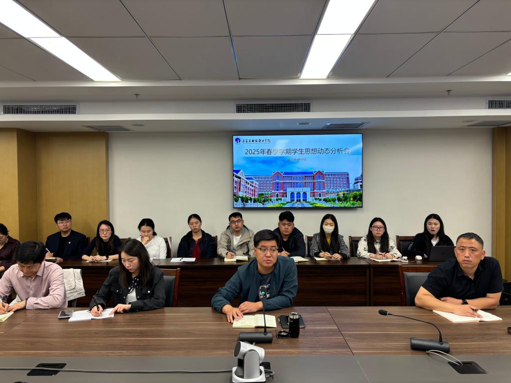 为深入了解学生的思想状况,全面及时掌握学生关注关心的问题、存在的思想困惑和实际需求,有针对性地开展大学生思想政治教育、日常管理和服务工作,学生处于4月17日在图书馆第一会议室召开2025年春季学期学生思想动态分析会。学校副校长王永利、学生处、各二级学院主管学生工作书记、副书记、学工秘书、团总支书记参加了此次会议。