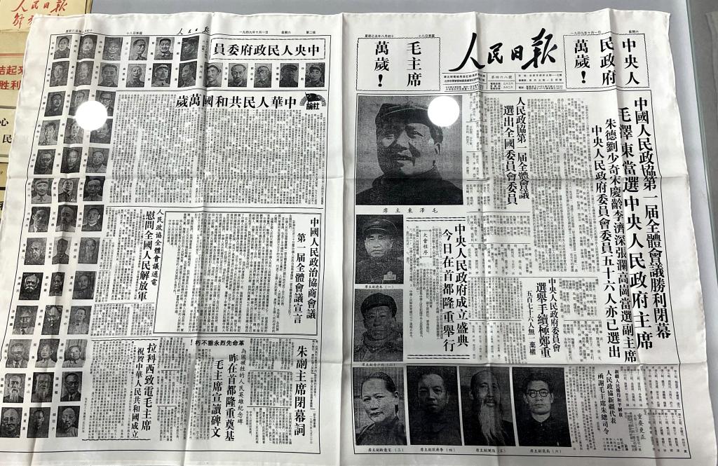 7、1949.10.1《人民日报》原版报纸——丝绸珍藏版绝版